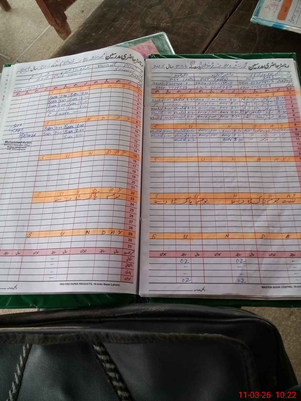 | CNIC | Full Name | Designation | R/C | Absence During Last Calender Month |
