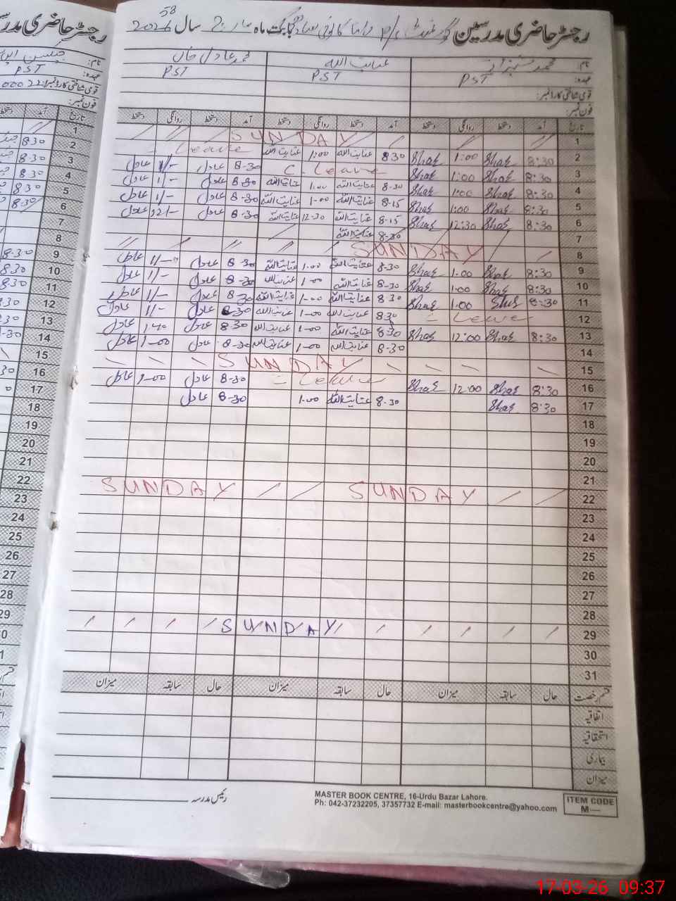 | CNIC | Full Name | Designation | R/C | Absence During Last Calender Month |