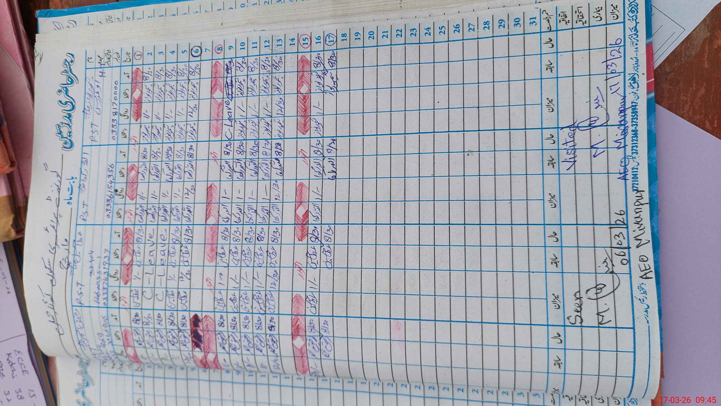 | Attendance Register | Head Teacher | MEA with School | Visit Proof |