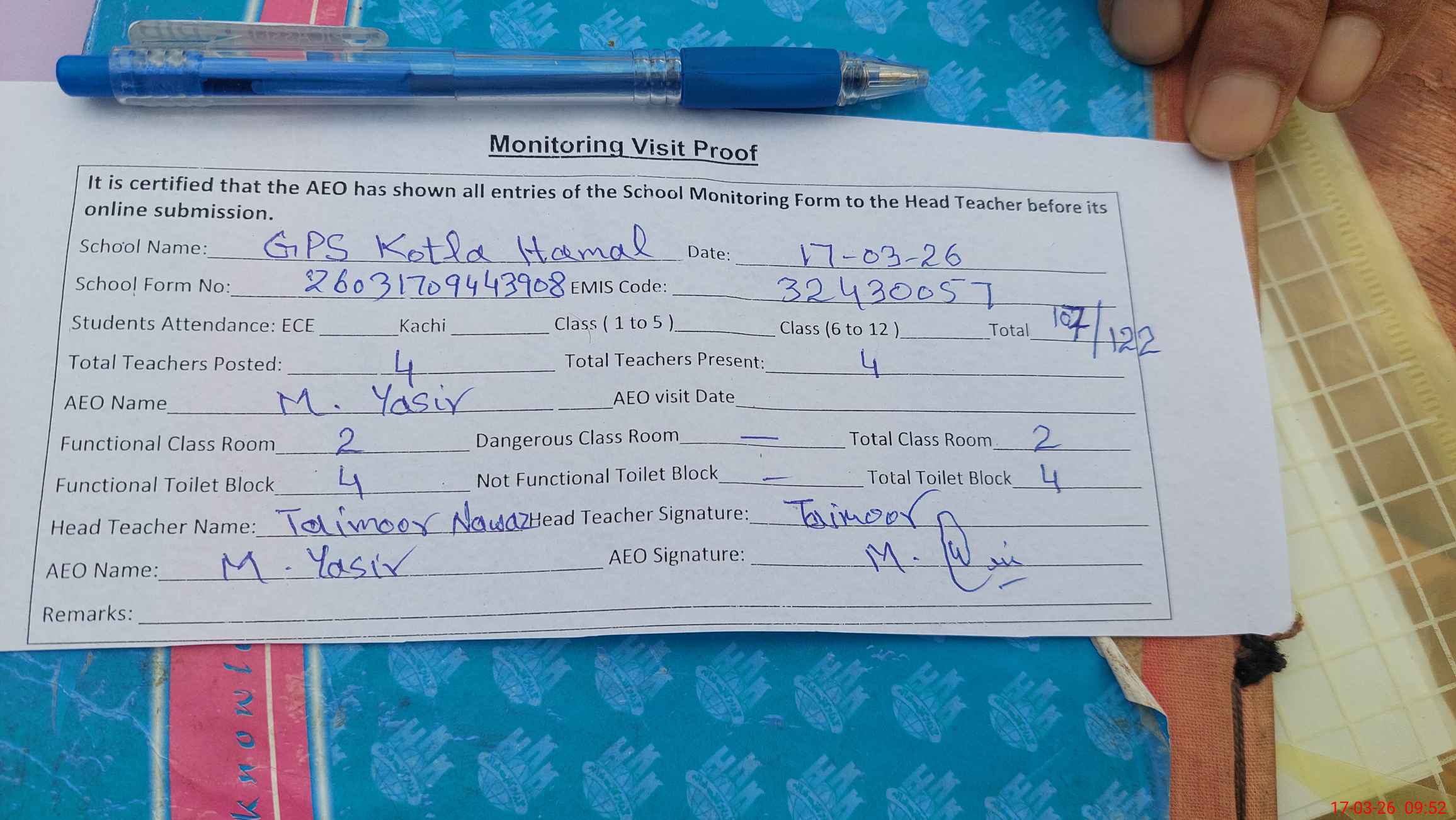 | EMIS Code: 32430057 | Name of School: GPS KOTLA HAMAL | |||
