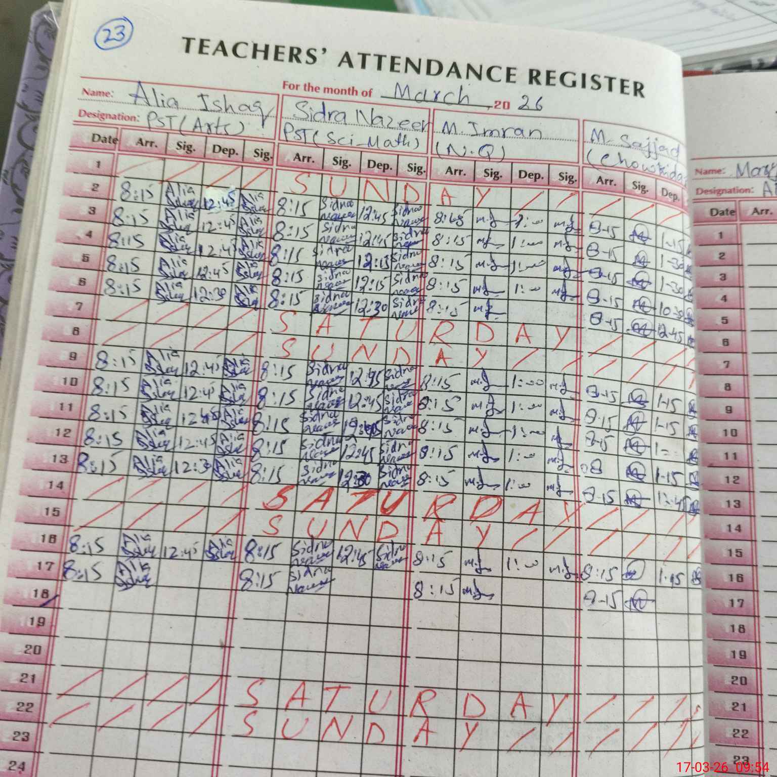 | Name: Al**** Is**** Designation: (School Headmaster's/Headmistress's) PST Phone/Cell Number: 03**** |