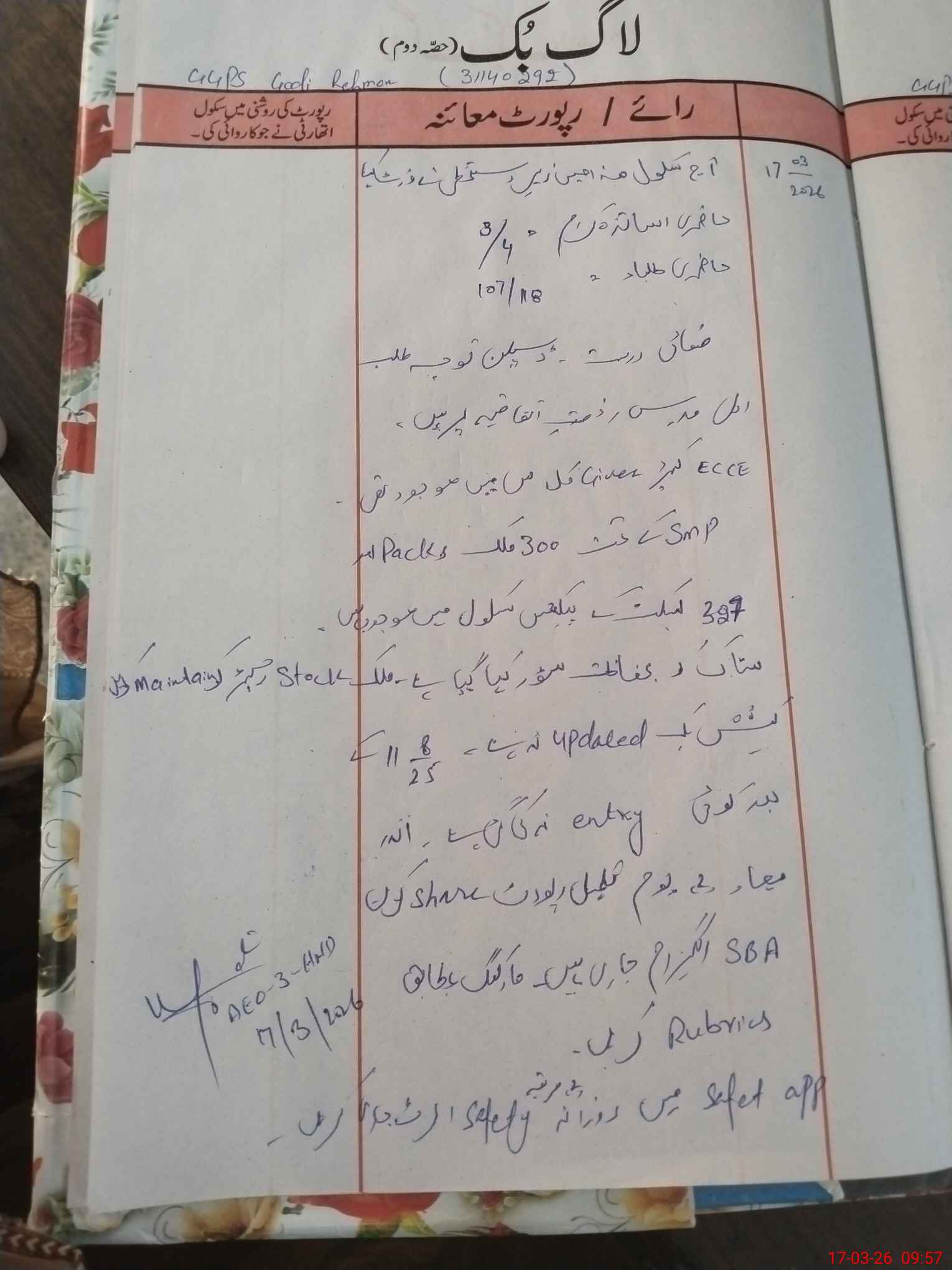 | EMIS Code: 31140292 | Name of School: GGPS GODI REHMAN HAROON ABAD | |||