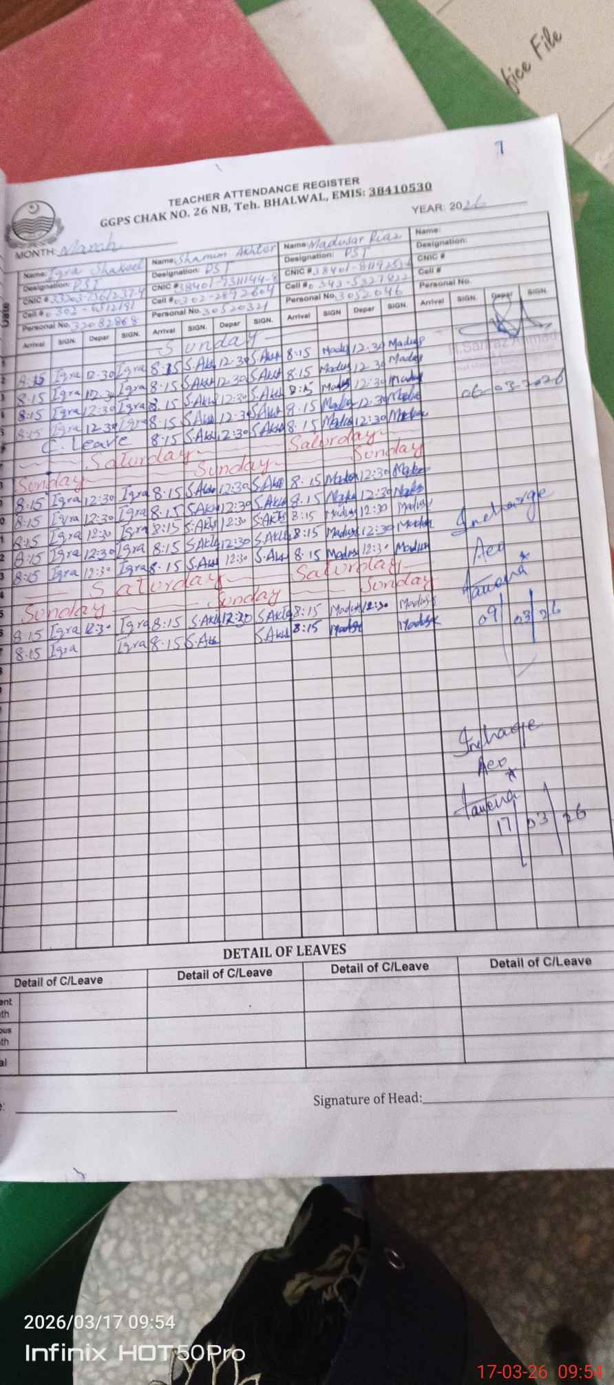 | Name: IQ**** SH**** Designation: (School Headmaster's/Headmistress's) PST Phone/Cell Number: 03**** |
