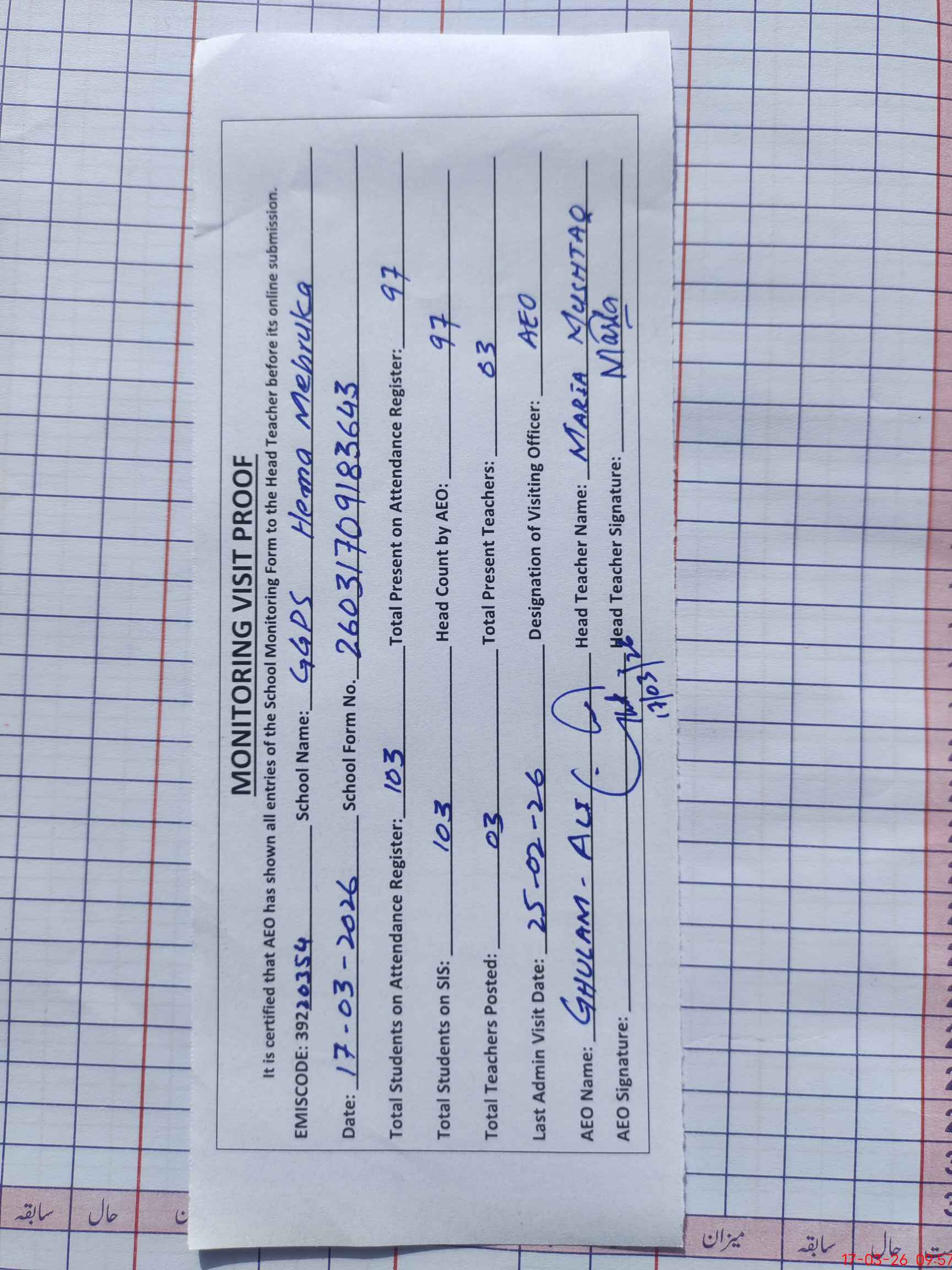 | EMIS Code: 39220354 | Name of School: GGPS HEEMAN MEHROOKA | |||