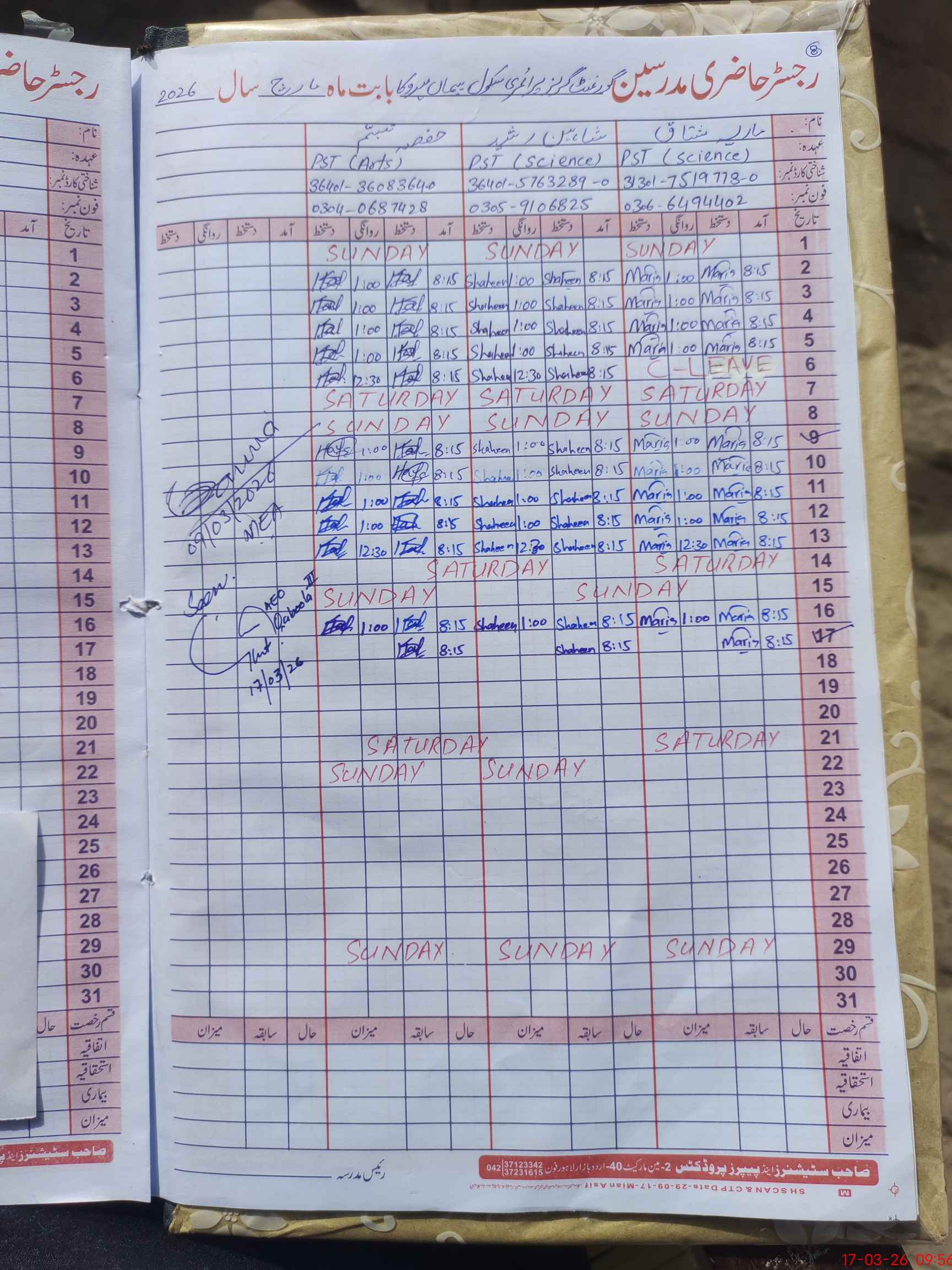 | Name: MA**** MU**** Designation: (School Headmaster's/Headmistress's) PST Phone/Cell Number: 03**** |