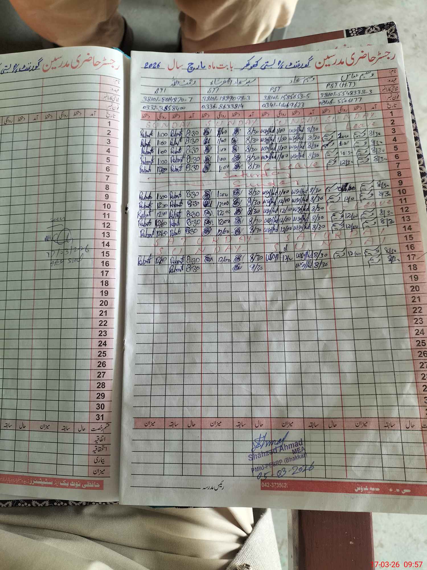 | Name: Wa**** Ab**** Designation: (School Headmaster's/Headmistress's) PST Phone/Cell Number: 03**** |