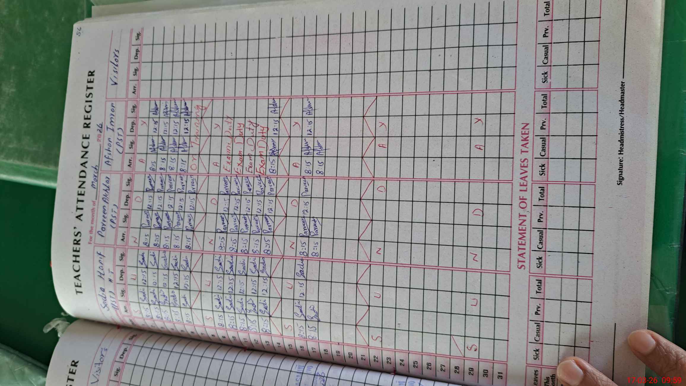 | Attendance Register | Head Teacher | MEA with School | Visit Proof |
