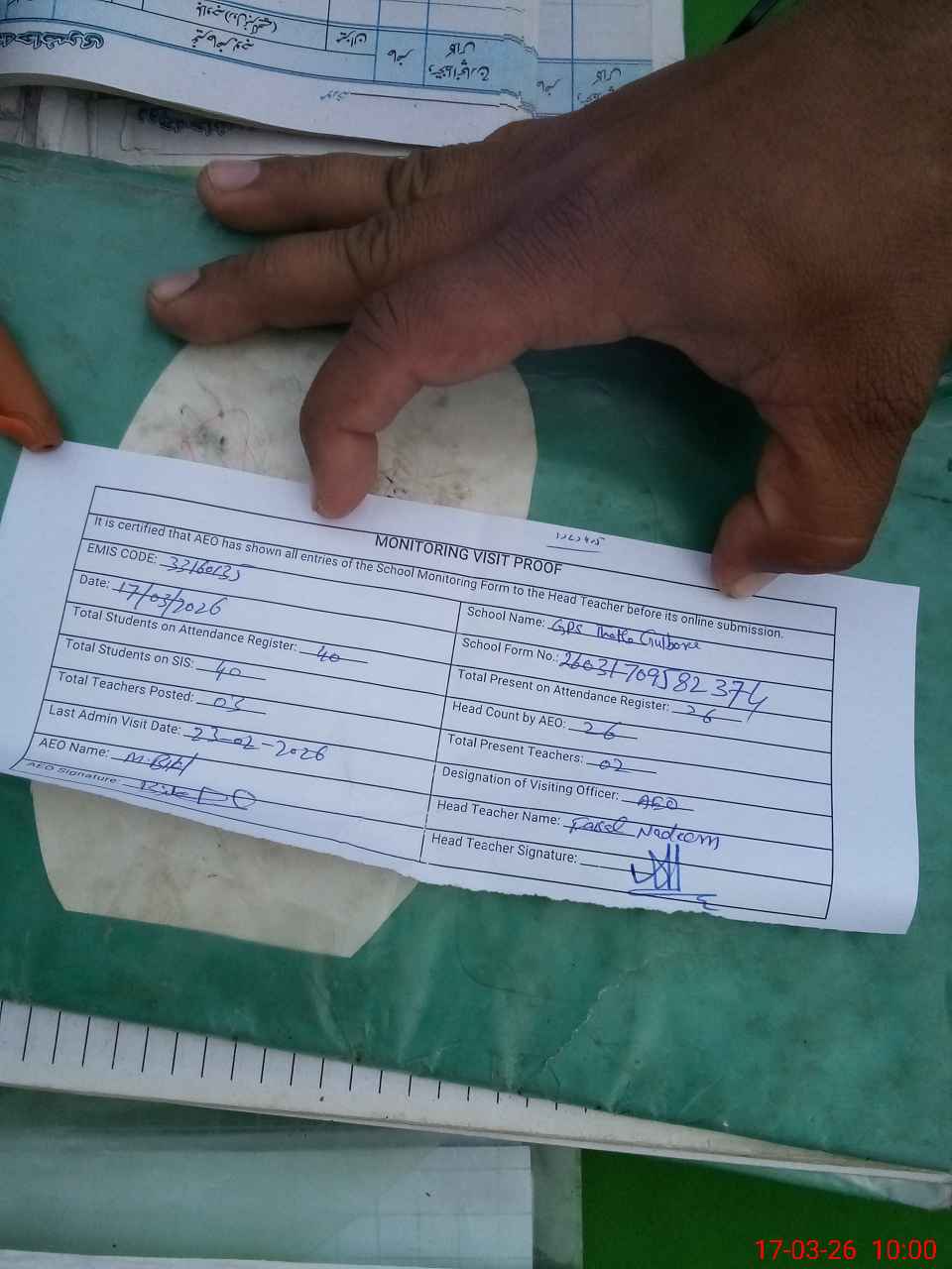 | EMIS Code: 33160135 | Name of School: GPS GUL BHORE TANDLIANWALA | |||