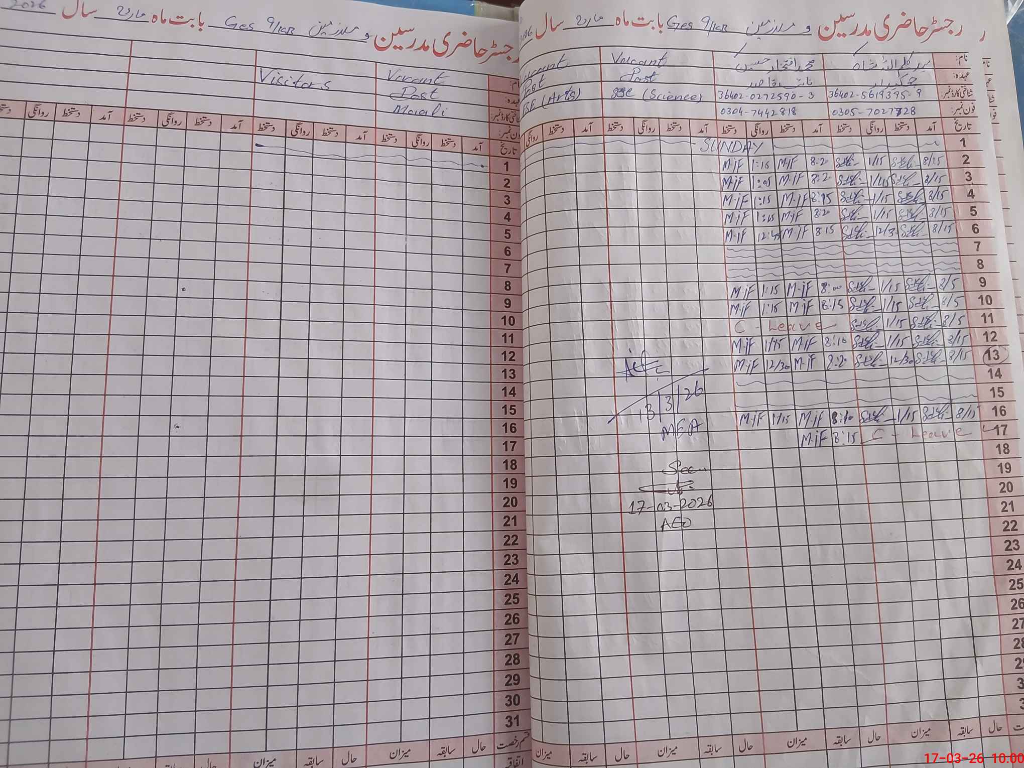 | Name: MU**** LA**** Designation: (School Headmaster's/Headmistress's) S.S.T.(GENERAL) Phone/Cell Number: 03**** |