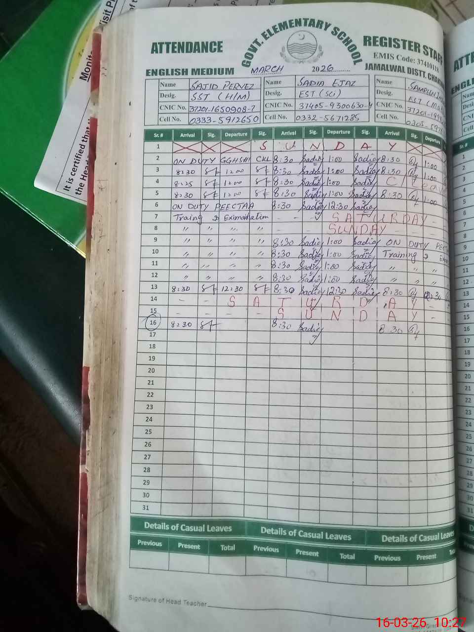 | Name: Sa**** Pe**** Designation: (School Headmaster's/Headmistress's) HEADMASTER Phone/Cell Number: 03**** |