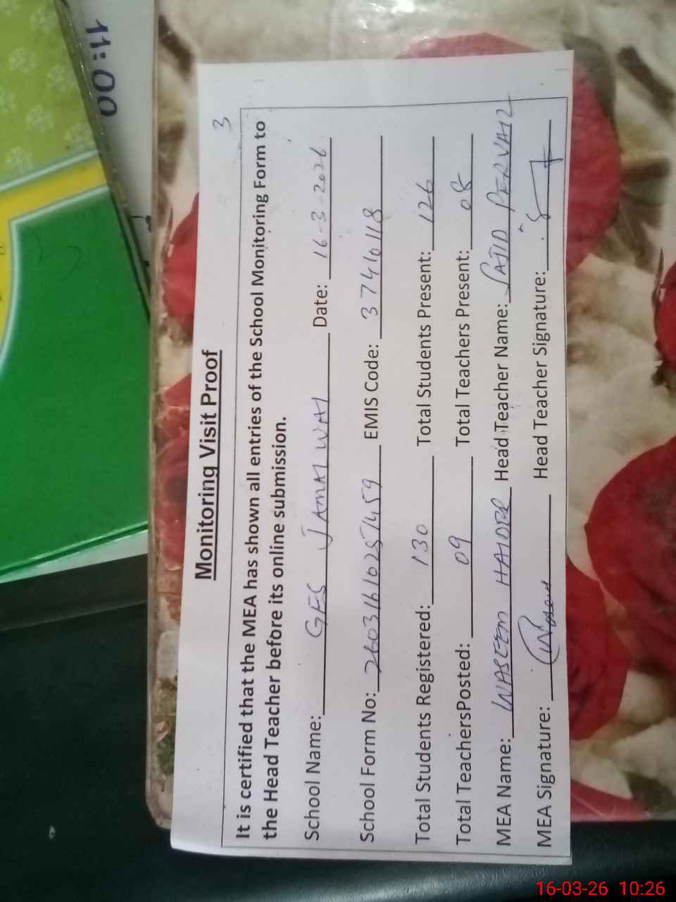 | EMIS Code: 37410118 | Name of School: GES JAMALWAL | |||