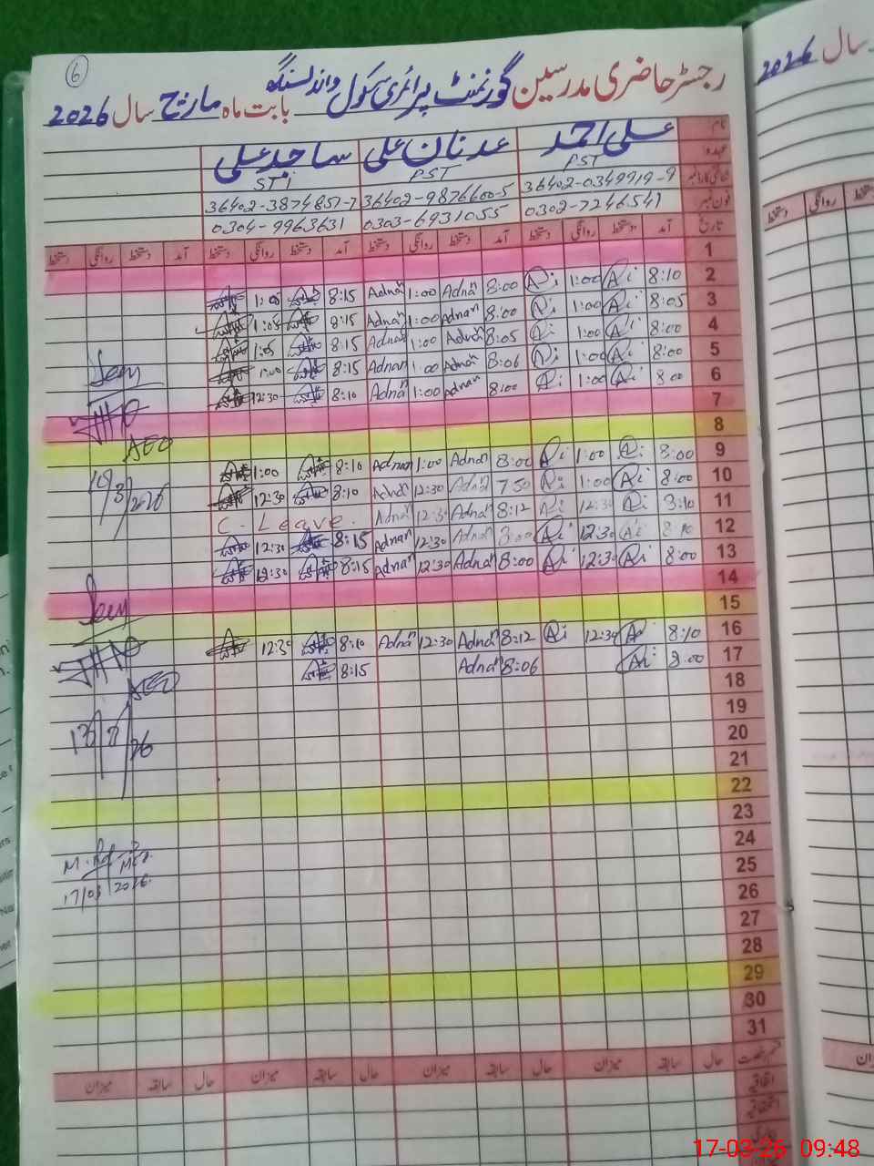 | Name: Al**** Ah**** Designation: (School Headmaster's/Headmistress's) PST Phone/Cell Number: 03**** |