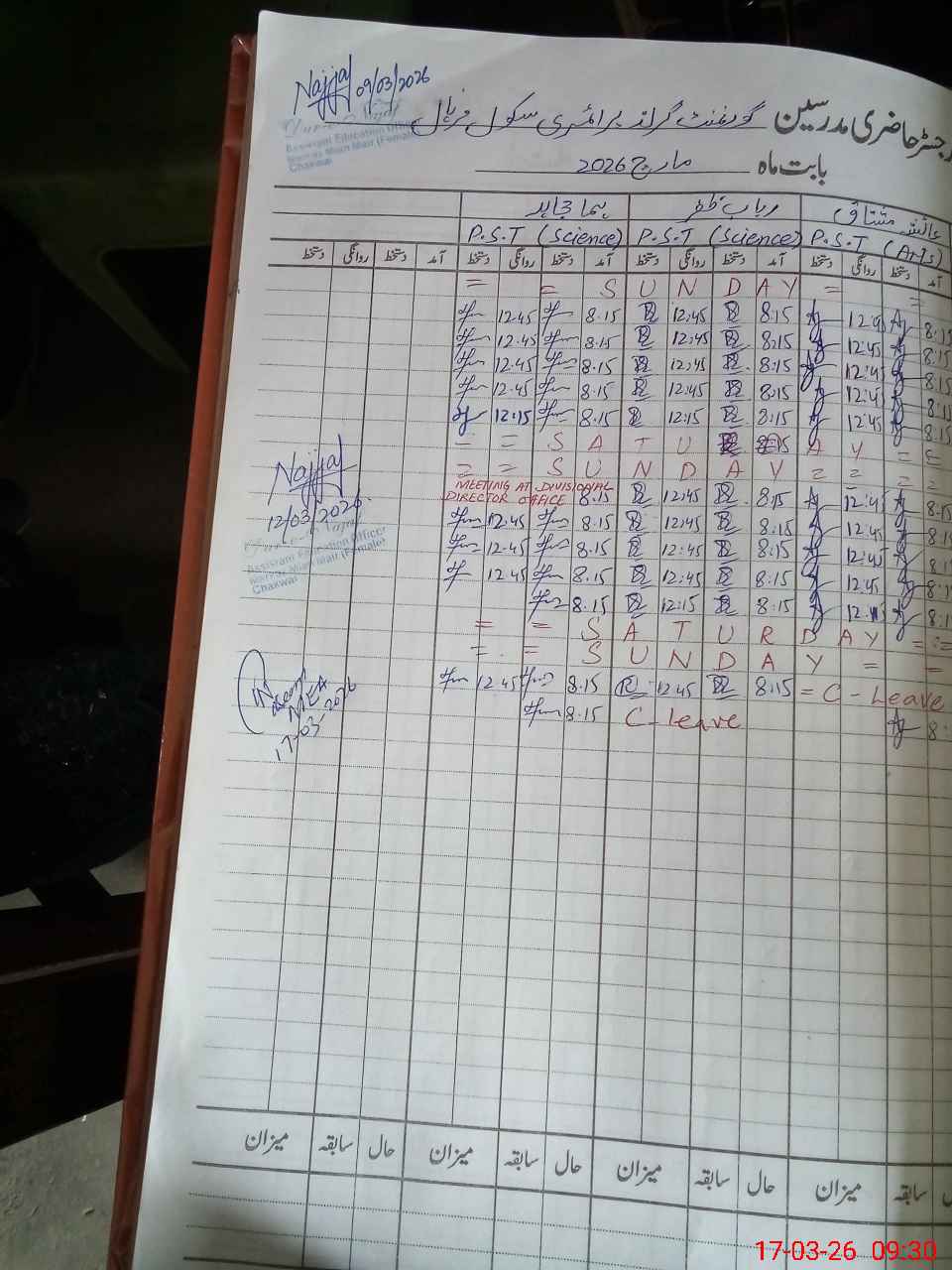 | 37**** | Ru**** Za**** | PST Science/Maths | Regular | 0 | 0 | 0 | 0 | 0 | 0 | 0 | 0 | 0 | Casual |