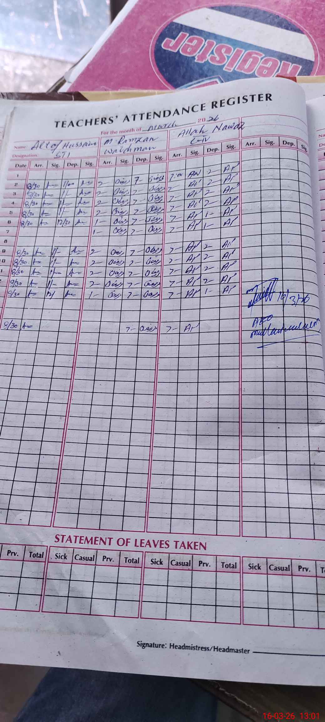 | EMIS Code: 36130079 | Name of School: GES CHAK NO 3 KMR P/O KOT MELA RAM | |||