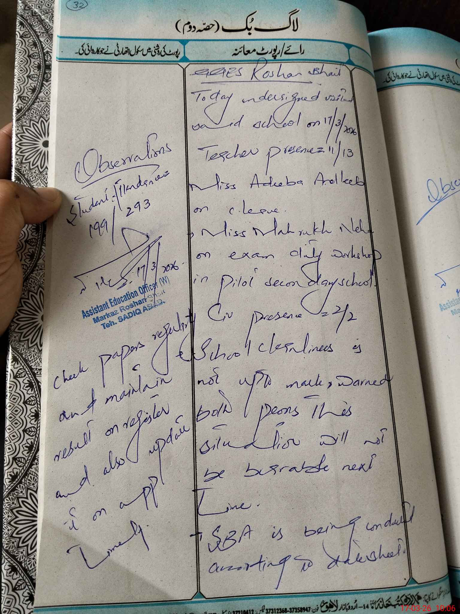 | Name: HA**** SH**** DI**** Designation: (School Headmaster's/Headmistress's) S.S.T.(SC) Phone/Cell Number: 03**** |