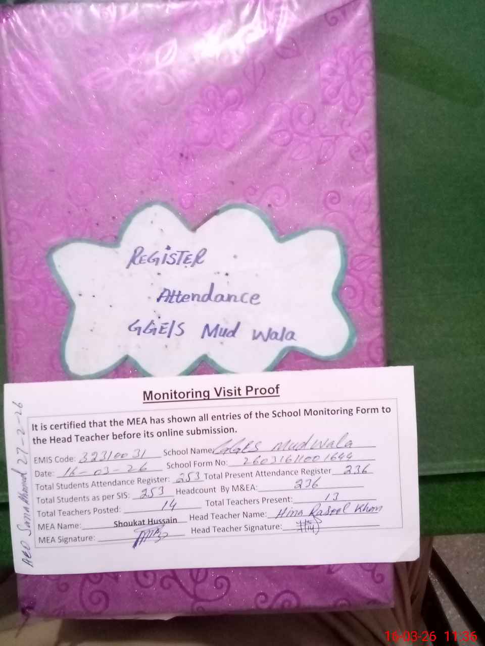 | EMIS Code: 32310031 | Name of School: GGES MUD WALA | |||