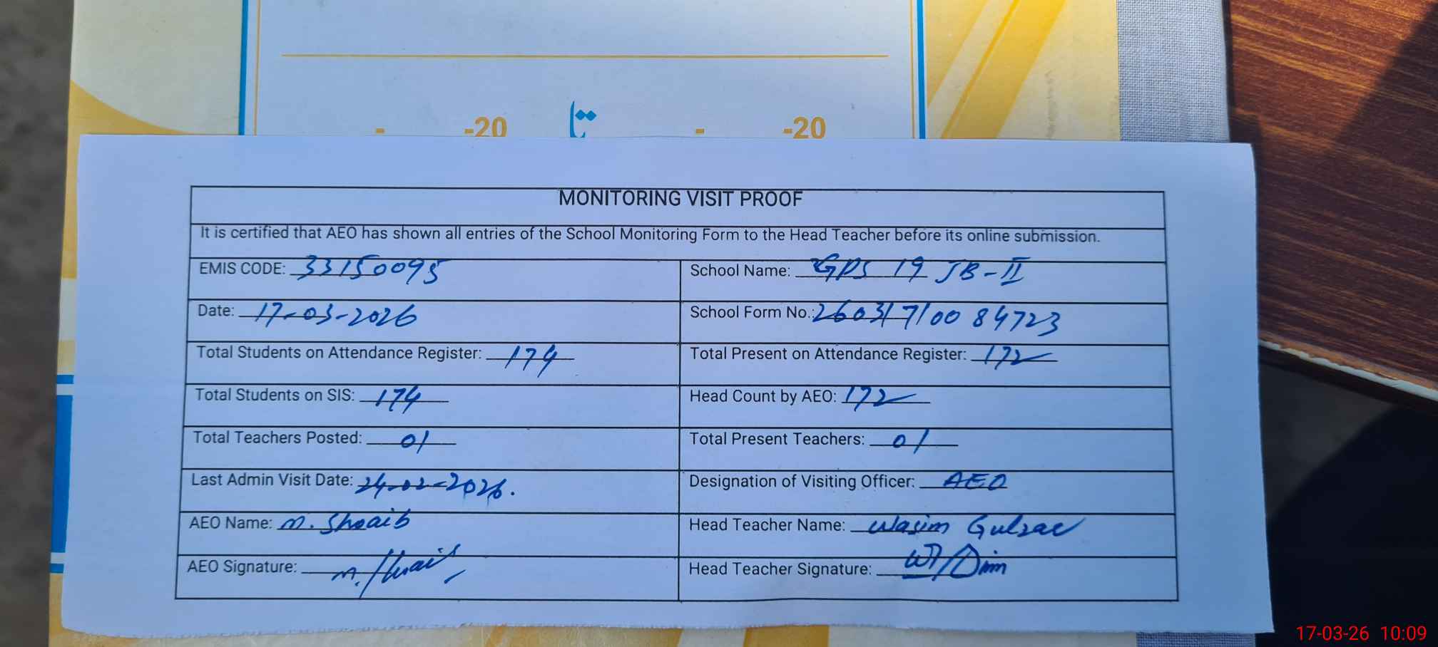 | EMIS Code: 33150095 | Name of School: GPS 19 JB II | |||