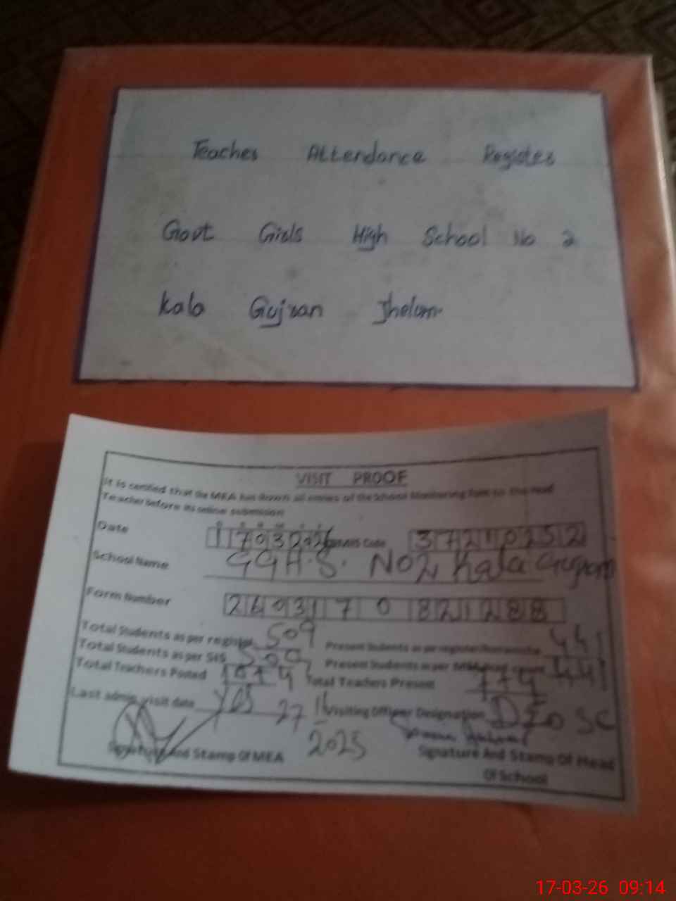 | EMIS Code: 37210252 | Name of School: GGHS NO. 2 KALA GUJRAN | |||