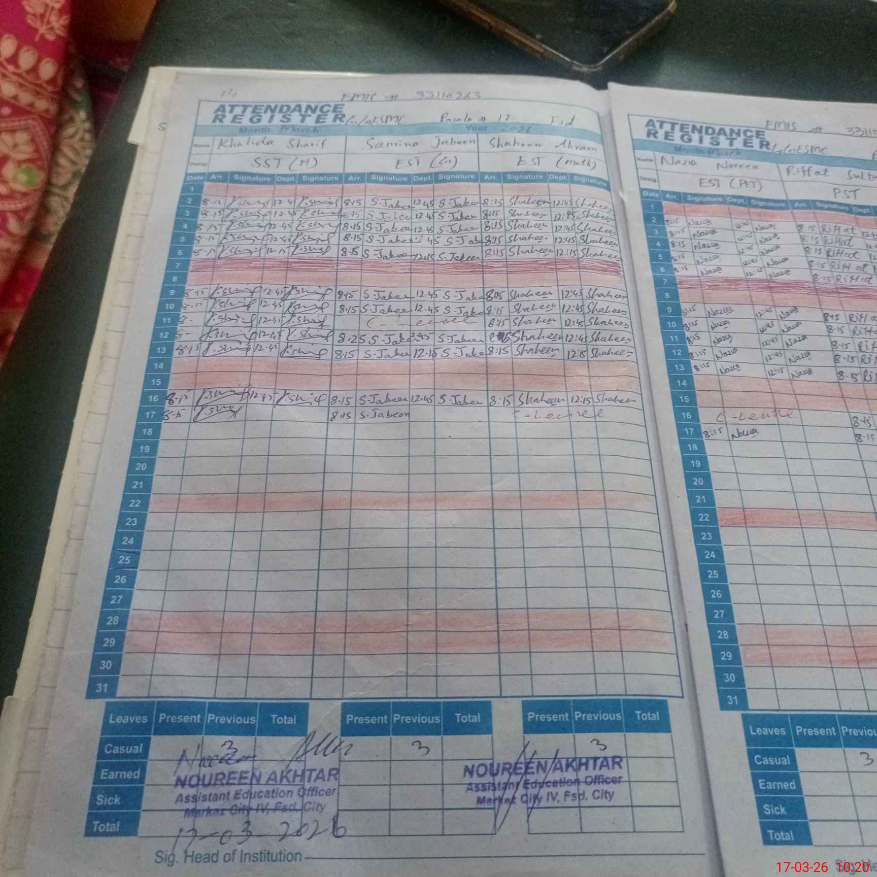 | Name: KH**** PA**** Designation: (School Headmaster's/Headmistress's) S.S.T.(ARTS) Phone/Cell Number: 03**** |