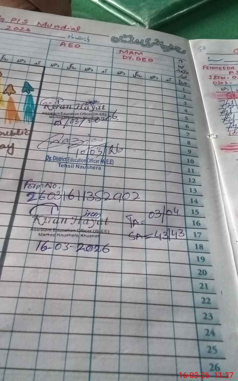 | District: KHUSHAB | Tehsil: NAUSHERA | Markaz: NOUSHERA (FEMALE) | Level: Primary | |