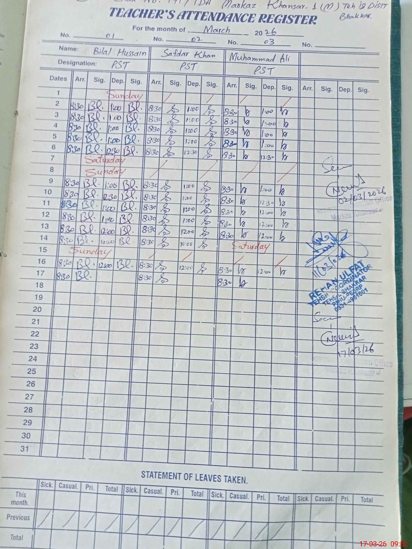 | Name: Za**** Hu**** Designation: (School Headmaster's/Headmistress's) PST Phone/Cell Number: 03**** |