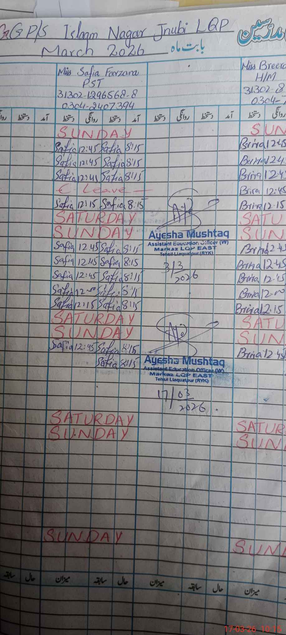 | District: RAHIMYAR KHAN | Tehsil: LIAQATPUR | Markaz: LQP EAST - FEMALE | Level: Primary | |