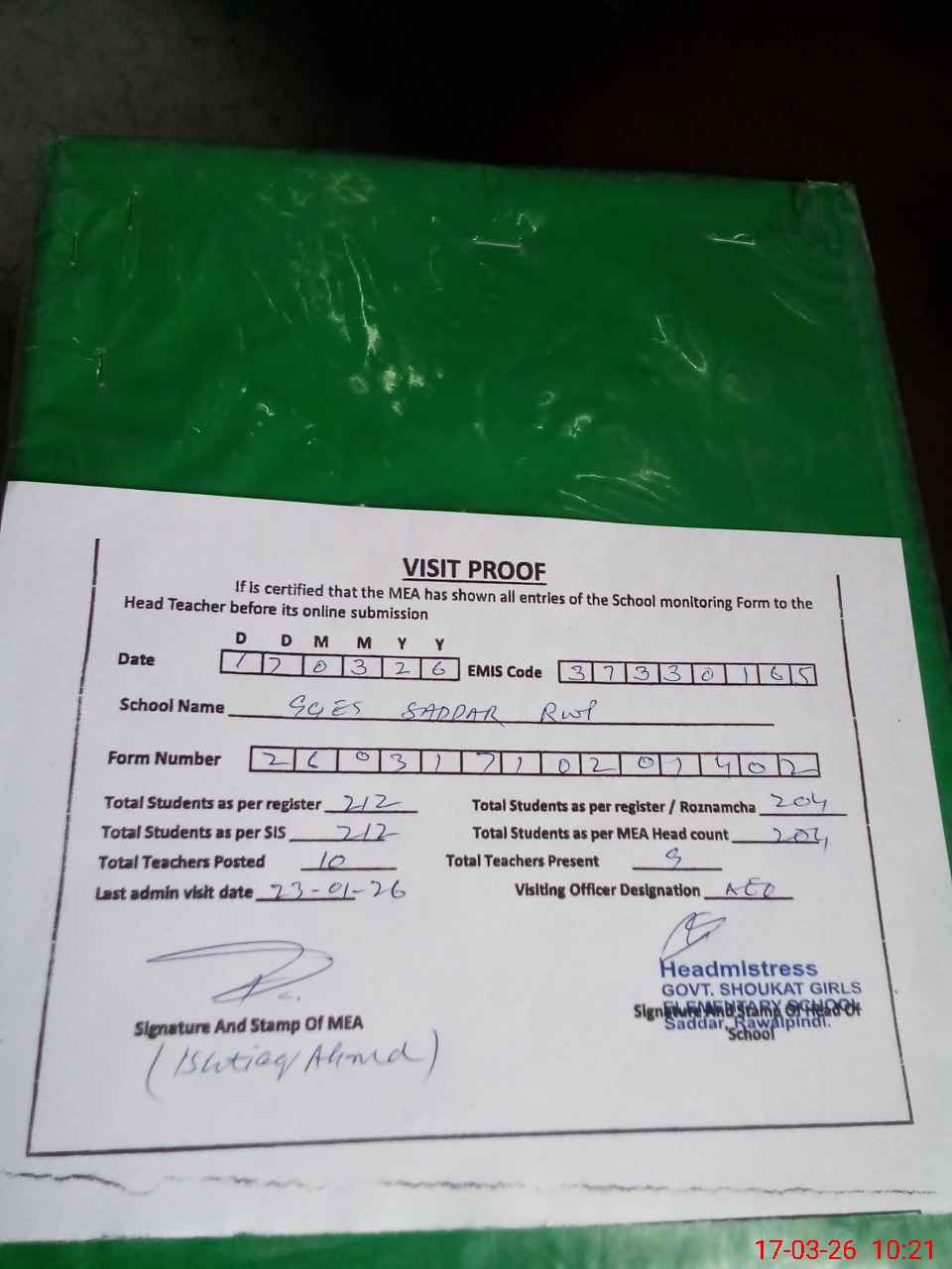 | EMIS Code: 37330165 | Name of School: GGES SHOUKAT SADDAR BAZAR | |||