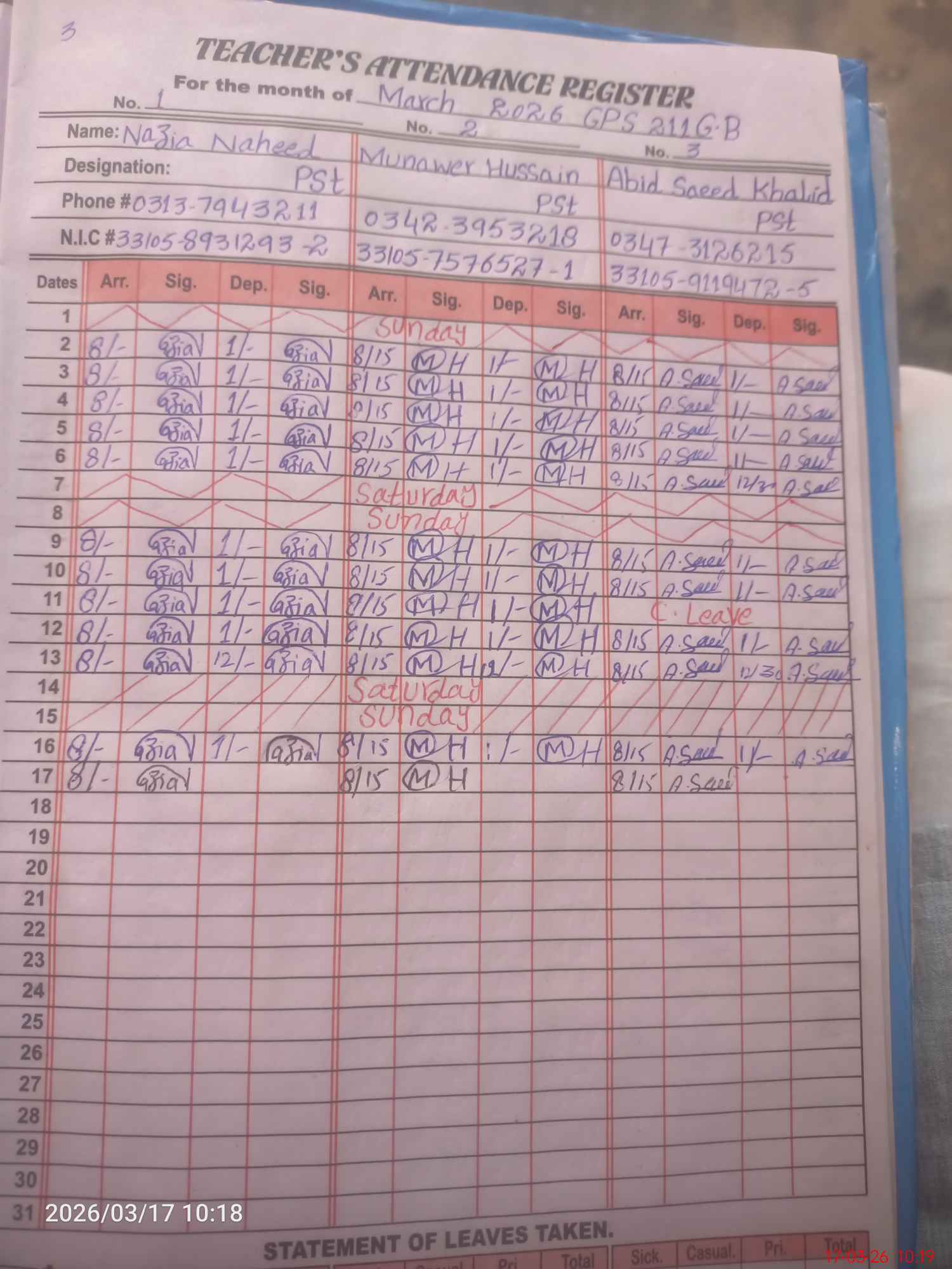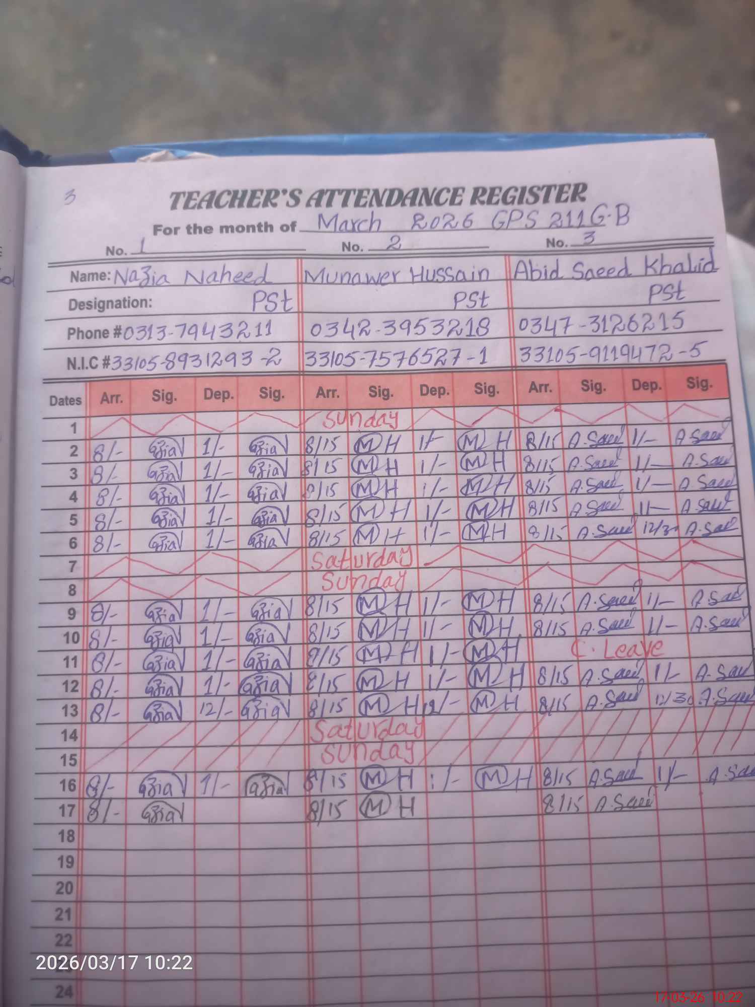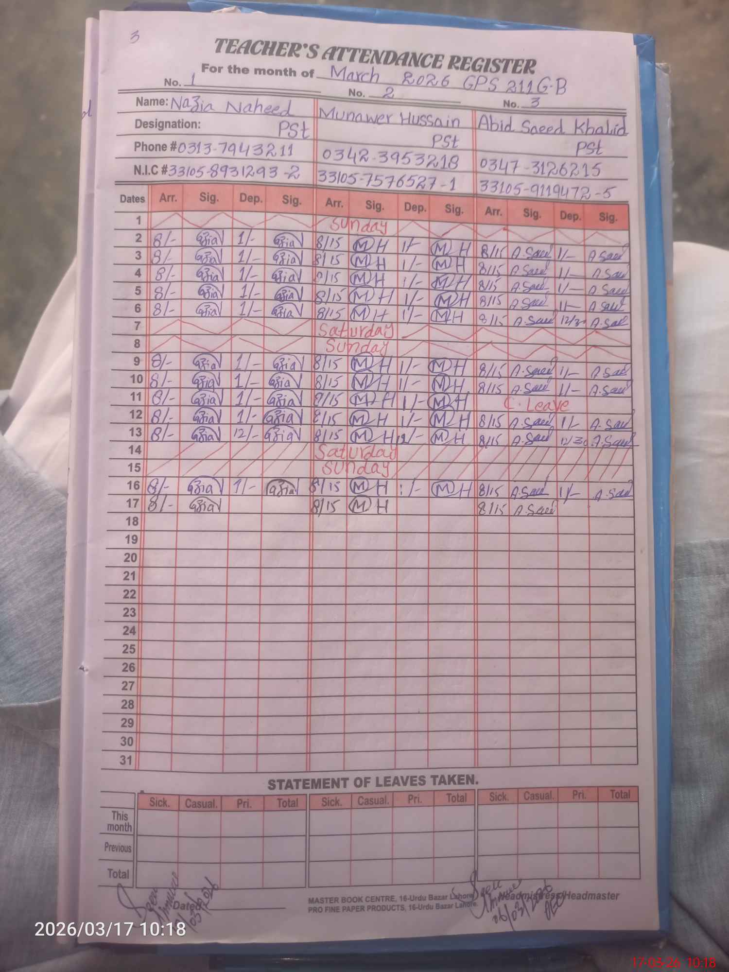 | Name: NA**** NA**** Designation: (School Headmaster's/Headmistress's) PST Phone/Cell Number: 03**** |
