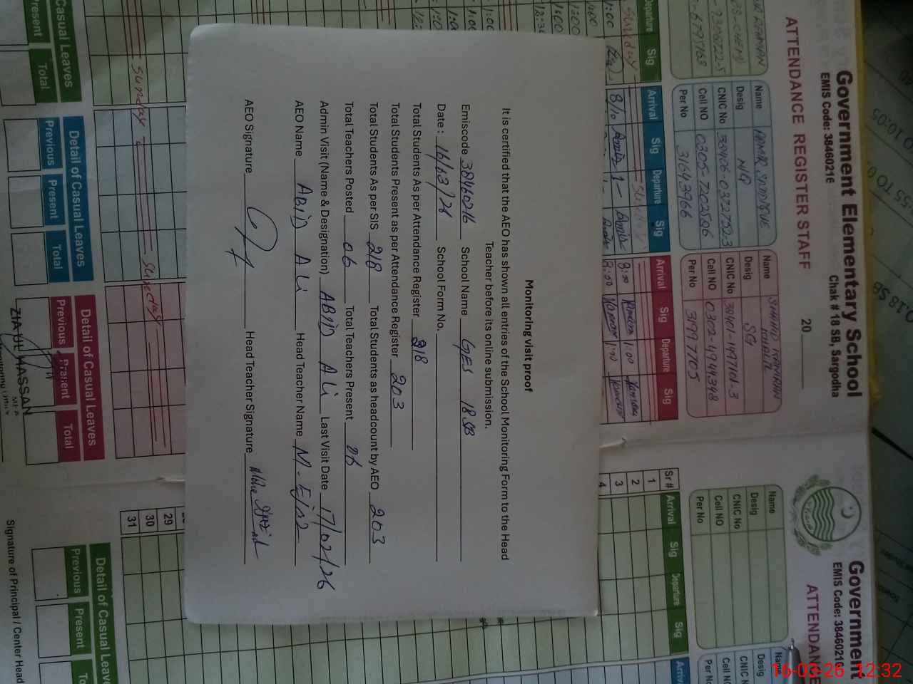 | EMIS Code: 38460216 | Name of School: GES CHAK NO.18 SB | |||