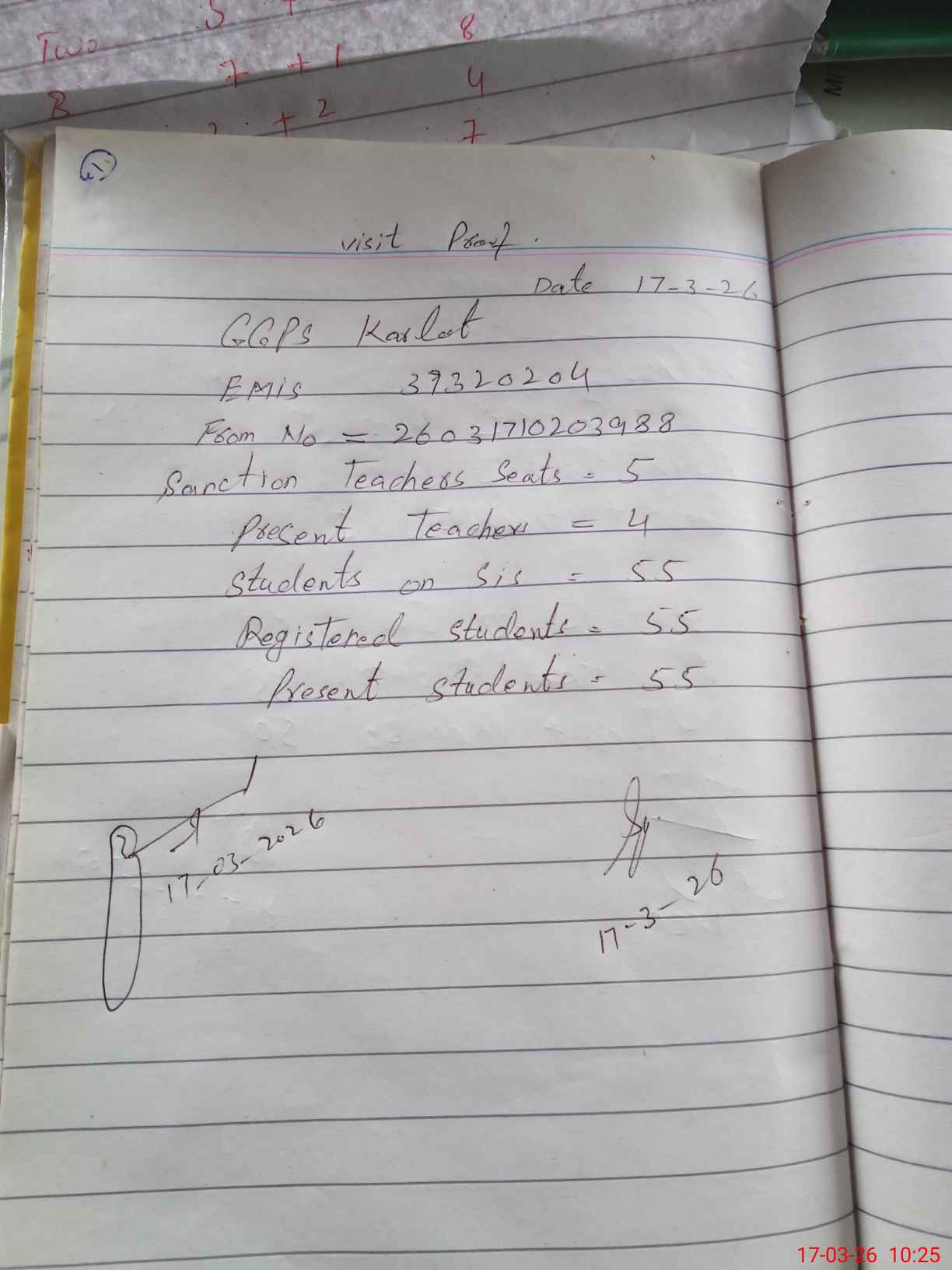 | Attendance Register | Head Teacher | MEA with School | Visit Proof |