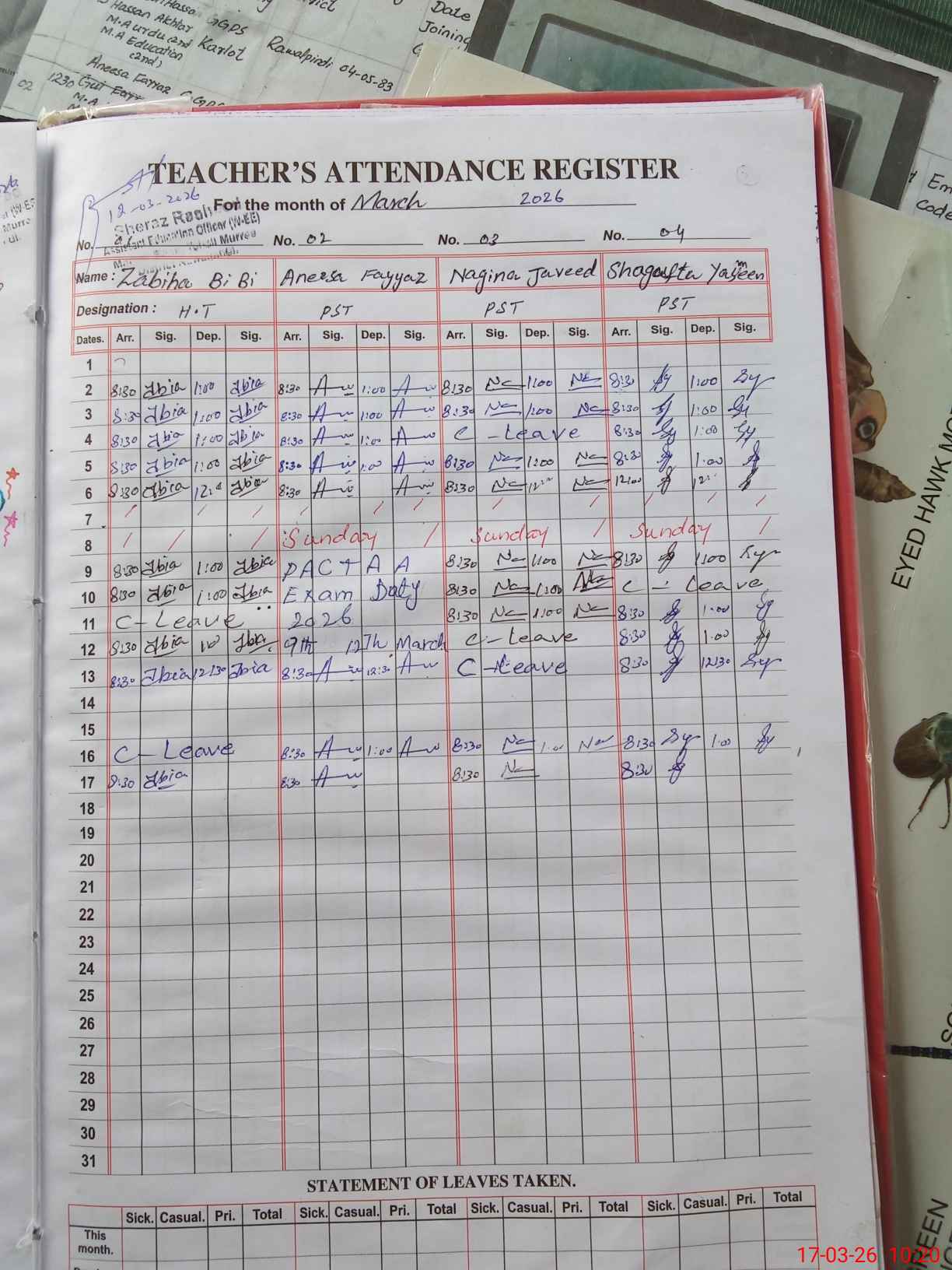 | Name: Za**** Bi**** Designation: (School Headmaster's/Headmistress's) PST Phone/Cell Number: 03**** |