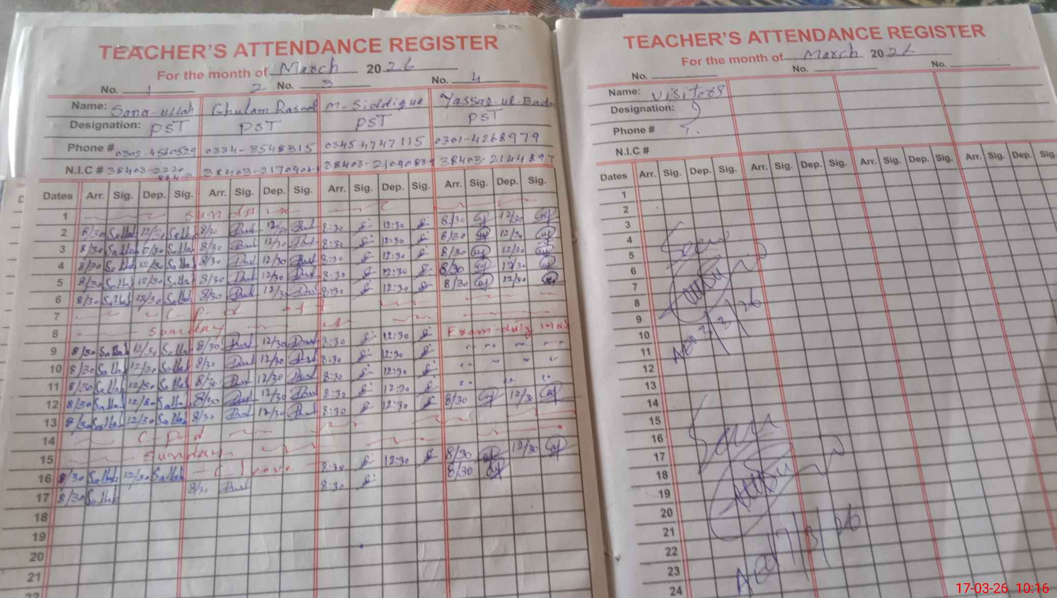 | Name: SA**** UL**** Designation: (School Headmaster's/Headmistress's) PST Phone/Cell Number: 03**** |