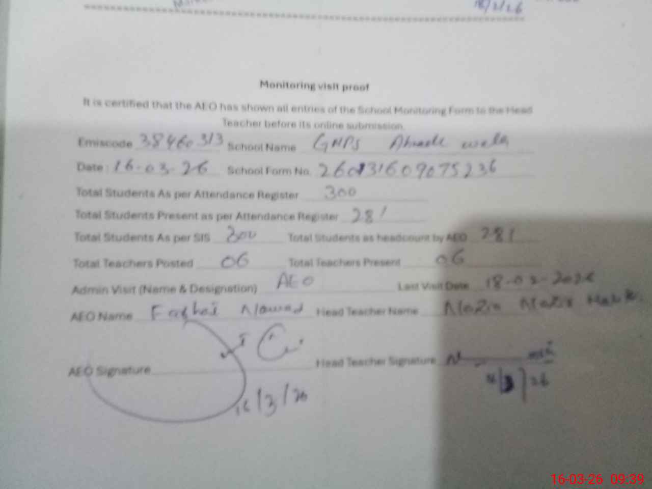 | EMIS Code: 38460313 | Name of School: GMPS AHMADEY WALA | |||