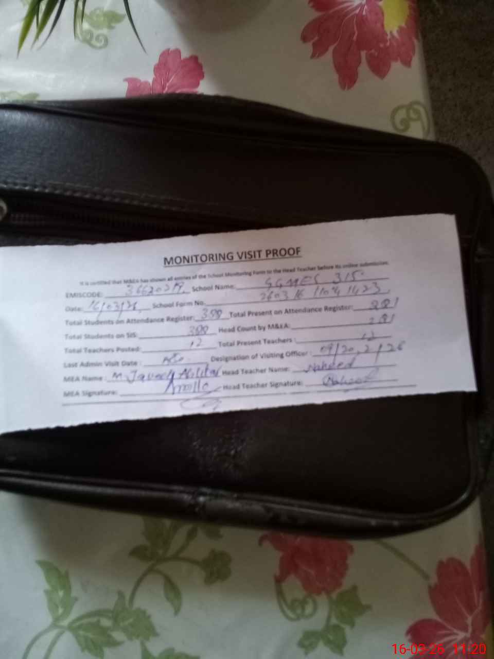 | Certified that this School was Inspected by the Undersigned MEA/DMO Today and the Information Stated Above is as Per Record. | |||||