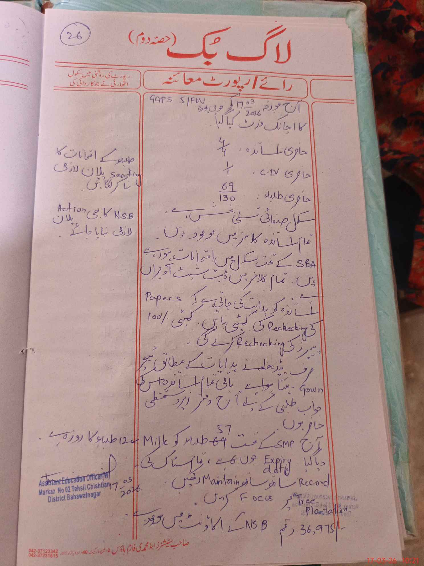 | District: BAHAWALNAGAR | Tehsil: CHISHTIAN | Markaz: CTN -II-FEMALE | Level: Primary | |