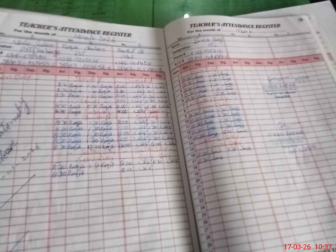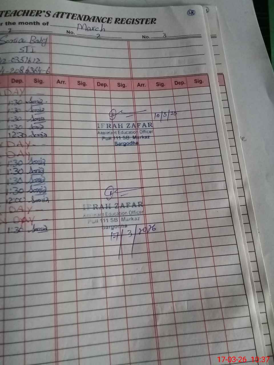 | Name: NI**** SA**** Designation: (School Headmaster's/Headmistress's) PST Phone/Cell Number: 03**** |