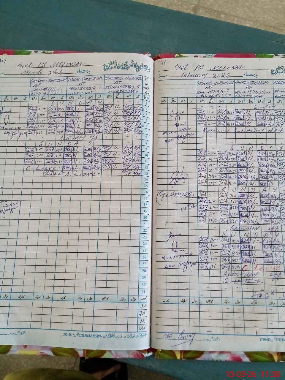 | Name: MU**** NA**** Designation: (School Headmaster's/Headmistress's) PST Phone/Cell Number: 03**** |