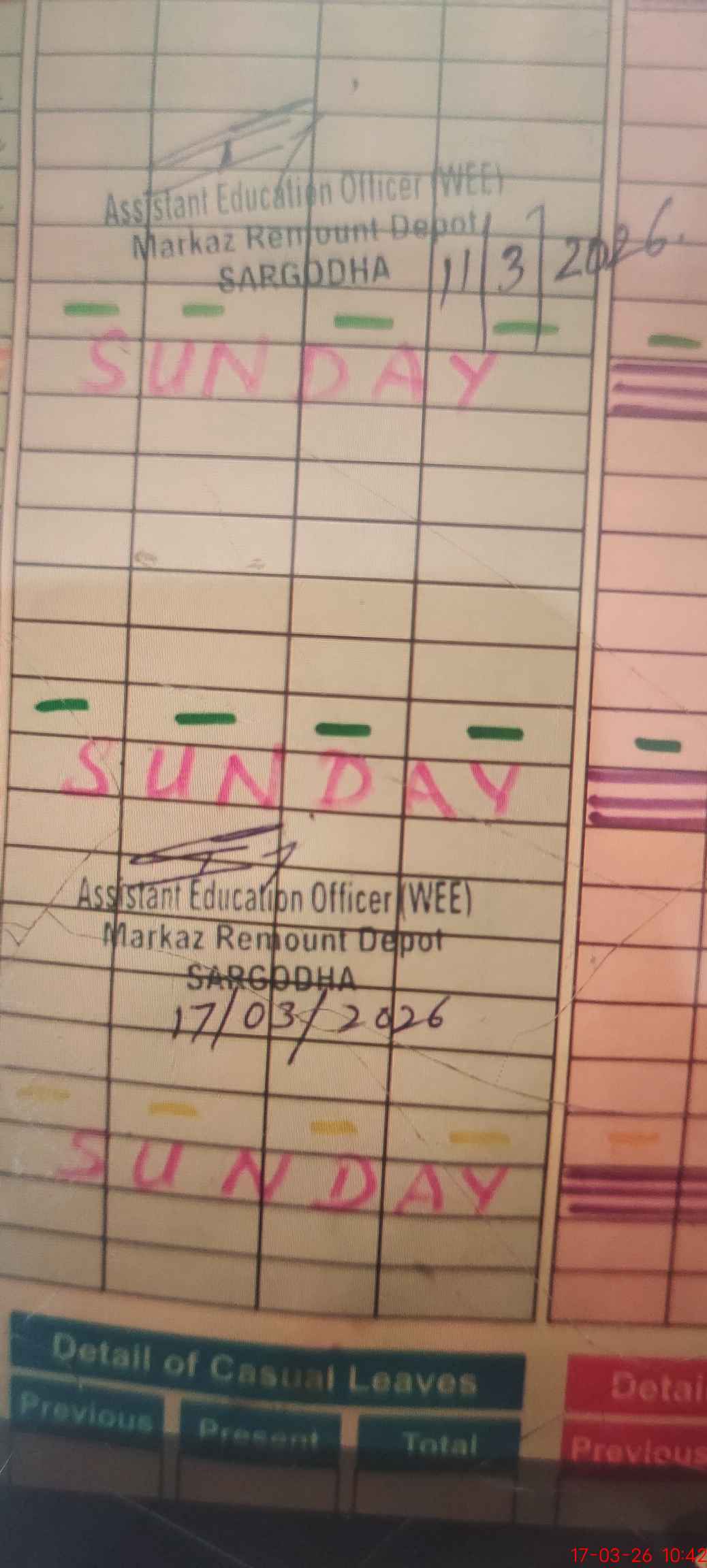 | CNIC | Full Name | Designation | R/C | Absence During Last Calender Month |
