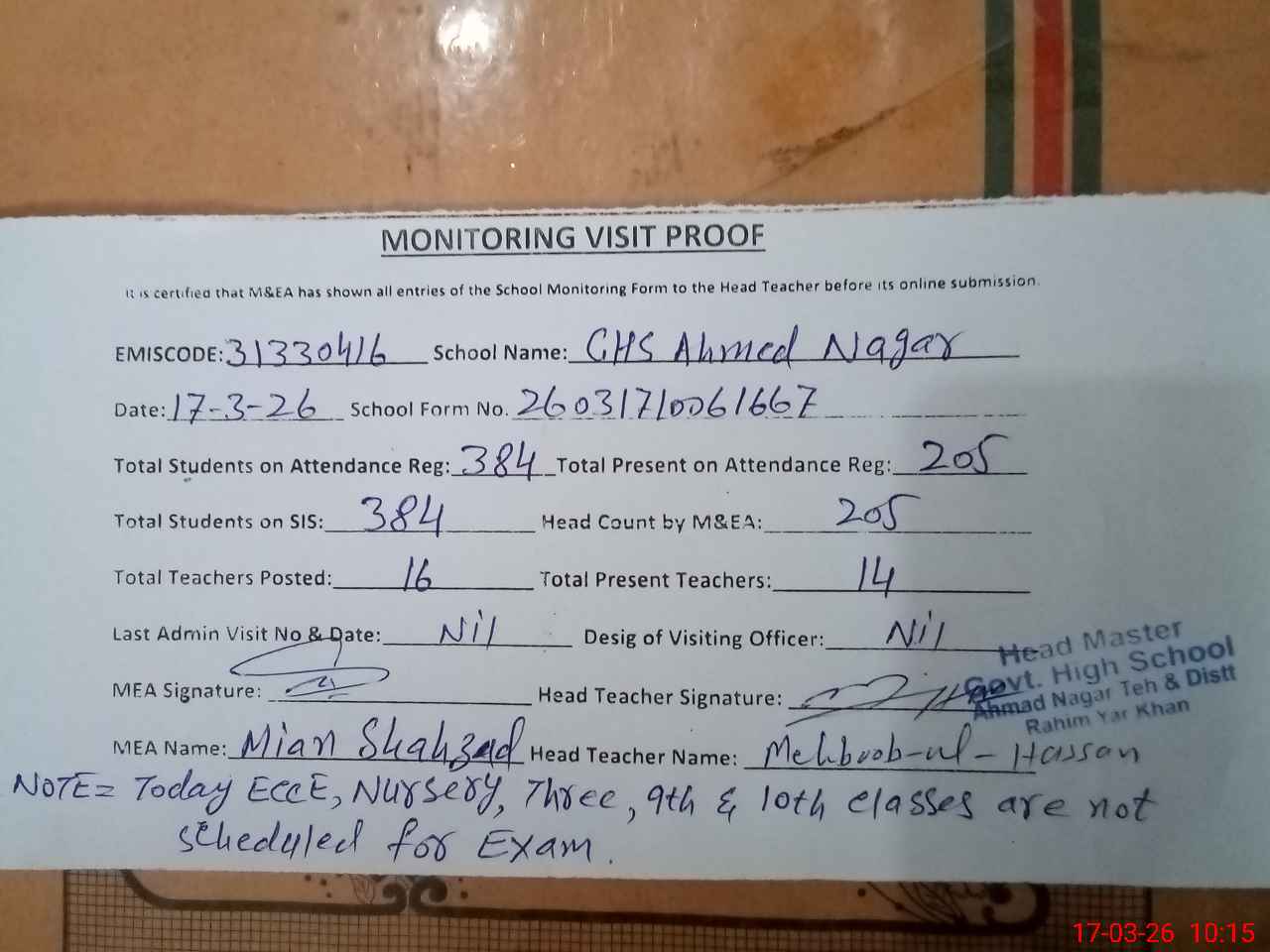 | EMIS Code: 31330416 | Name of School: GHS AHMED NAGAR | |||