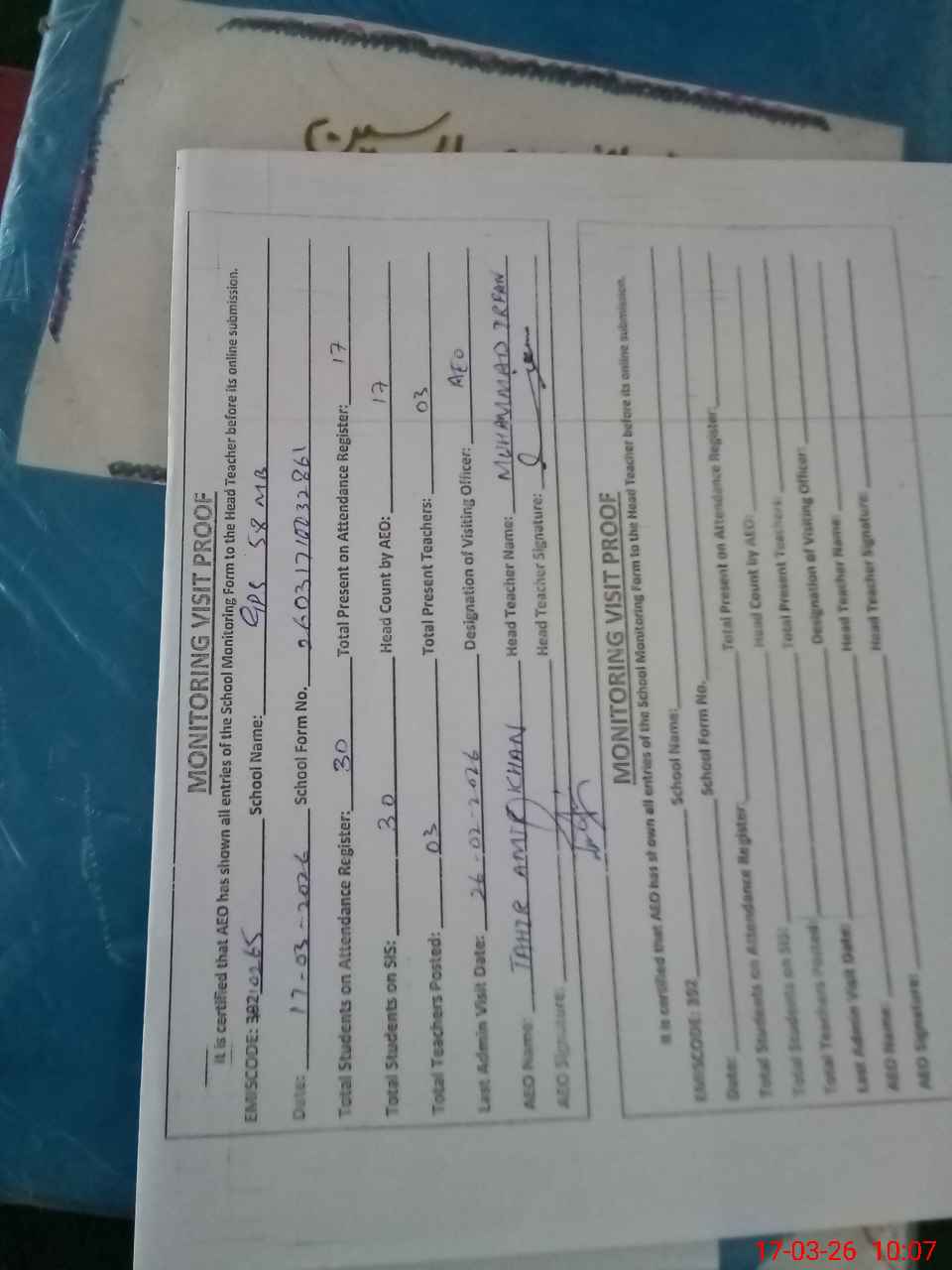 | EMIS Code: 38210265 | Name of School: GPS CHAK NO. 58 MB | |||