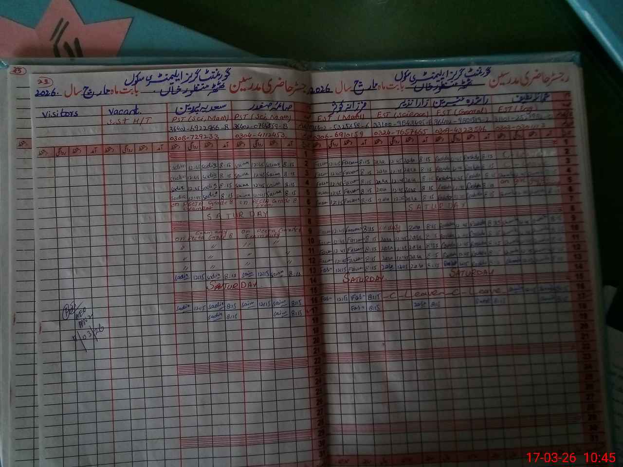 | Name: Sh**** La**** Designation: (School Headmaster's/Headmistress's) EST Phone/Cell Number: 03**** |