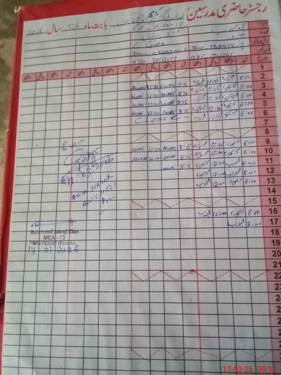 | Monitoring Date: 17-03-2026 | Start Time: 17-03-2026 08:54 AM | End Time: 17-03-2026 09:17 AM | Name of MEA: Mu**** As**** | |