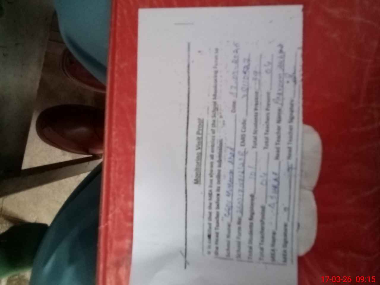 | Attendance Register | Head Teacher | MEA with School | Visit Proof |