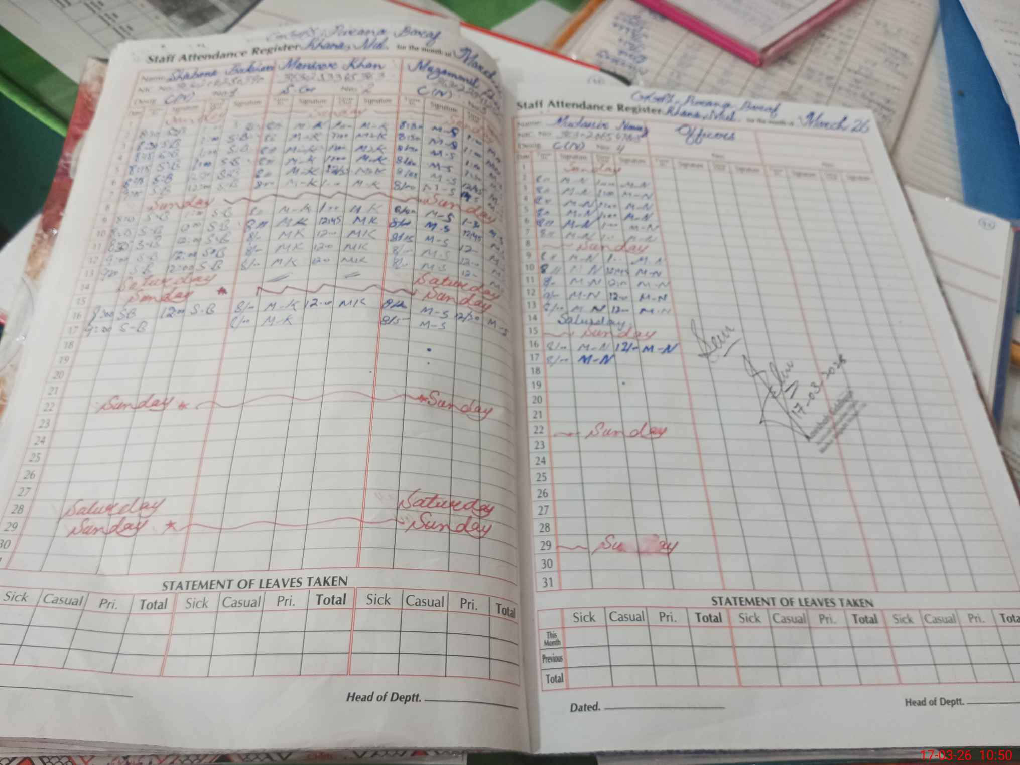 | Leave | Duty | Absent | Maternity | Medical | Ex- Pak |