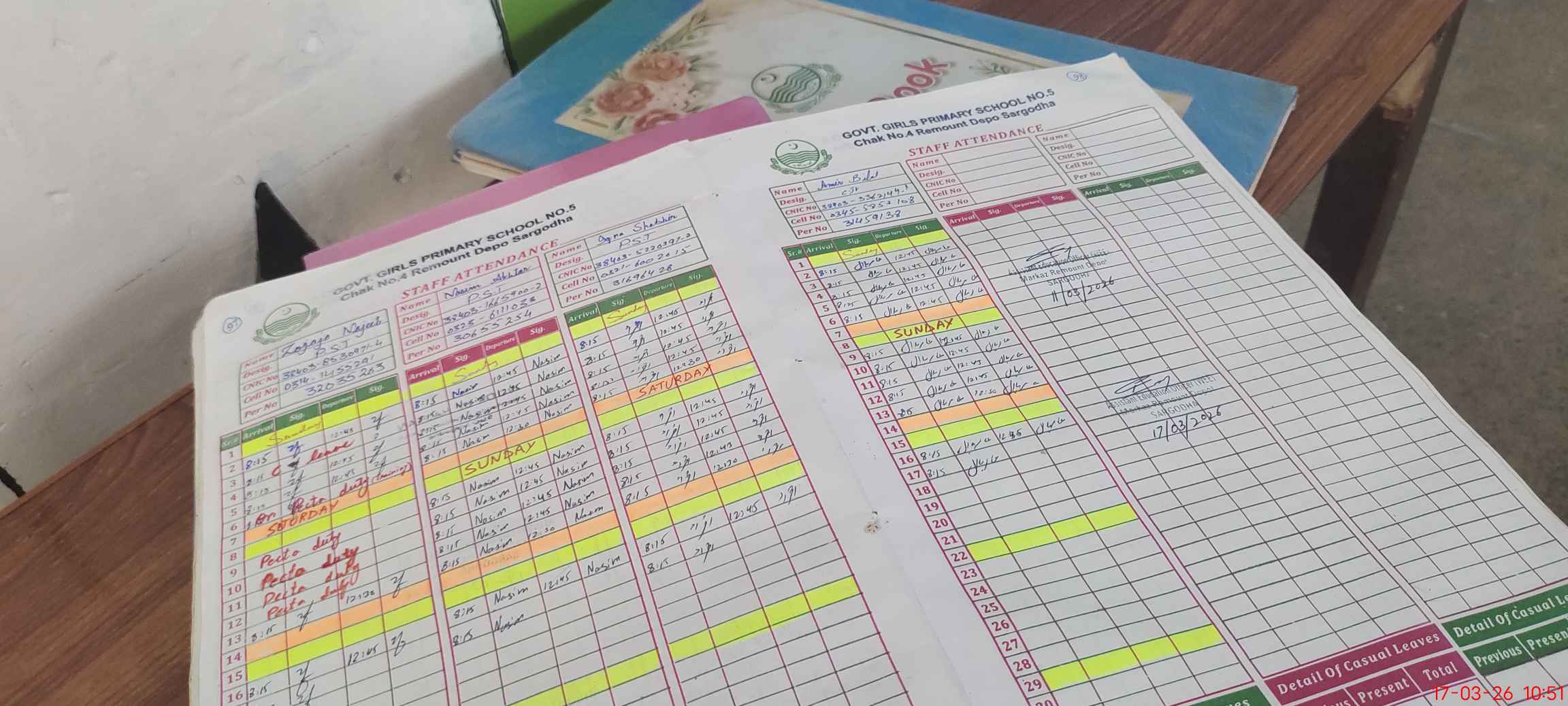 | CNIC | Full Name | Designation | R/C | Absence During Last Calender Month |