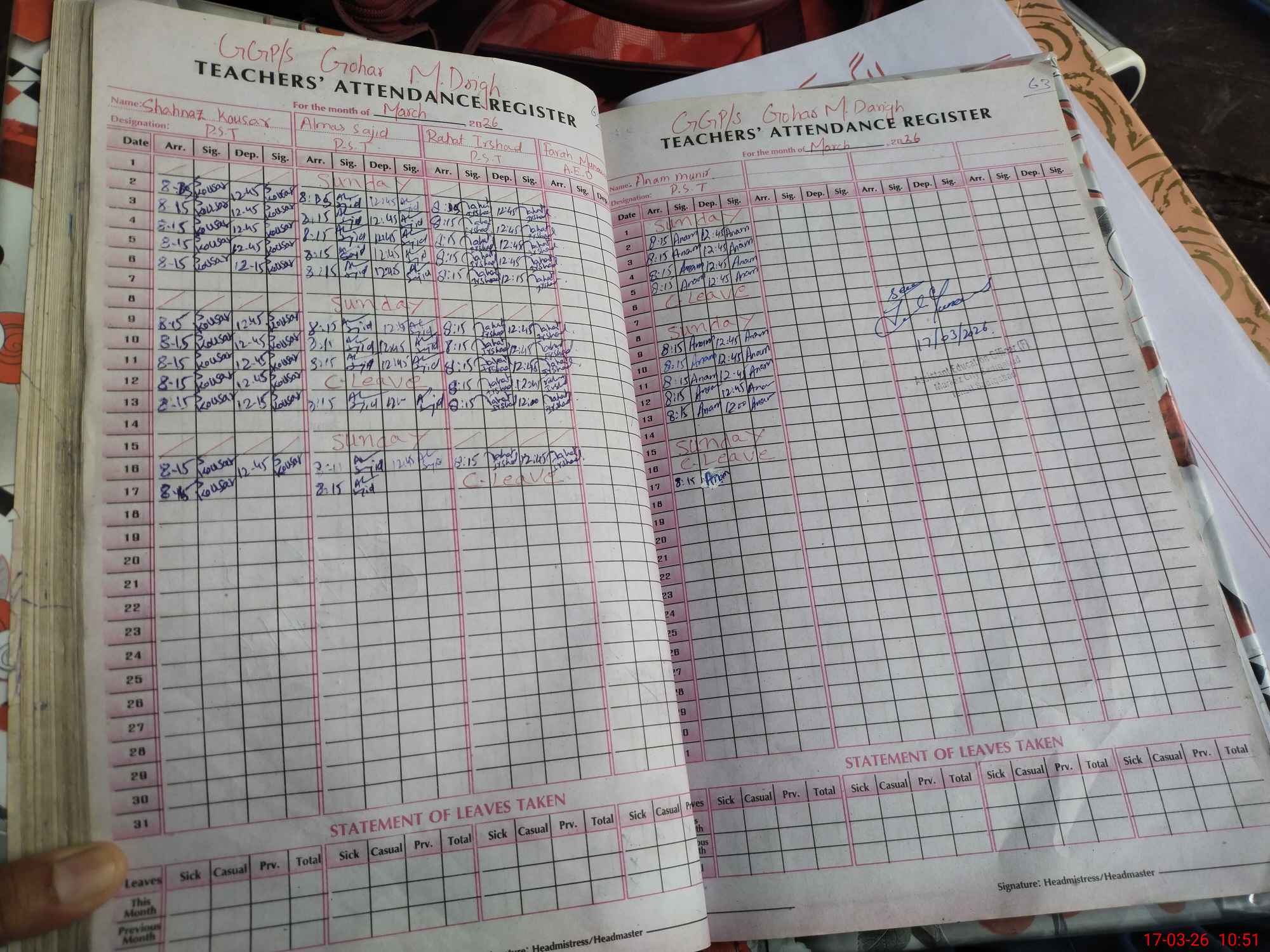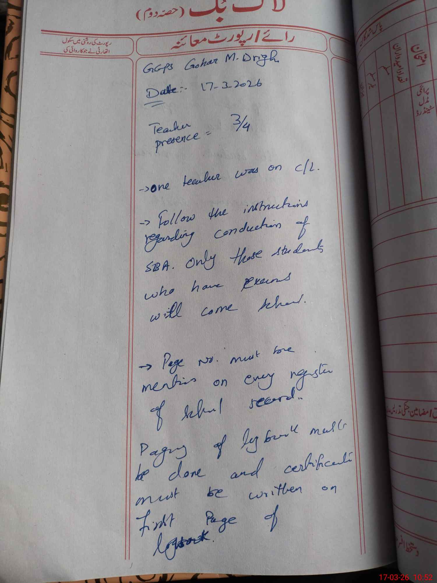 | Remarks (Use Separate Page if Required): exam off Classes. Nursary, 3 | |||||