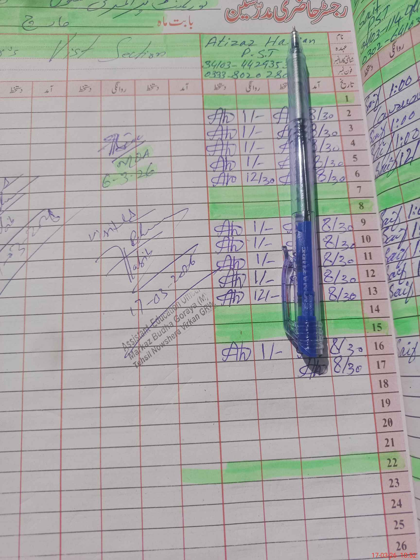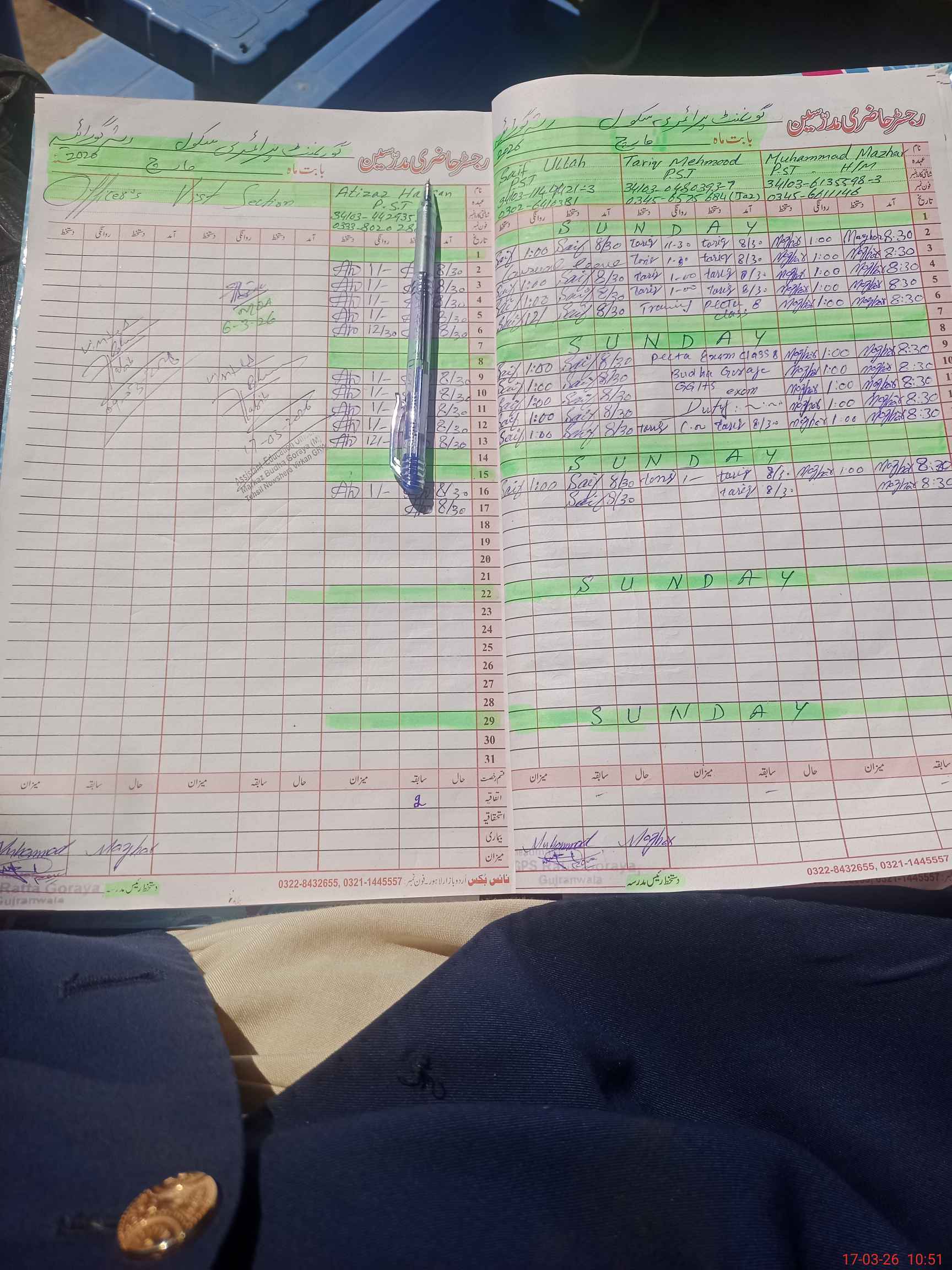 | Name: Mu**** Ma**** Designation: (School Headmaster's/Headmistress's) PST Phone/Cell Number: 03**** |