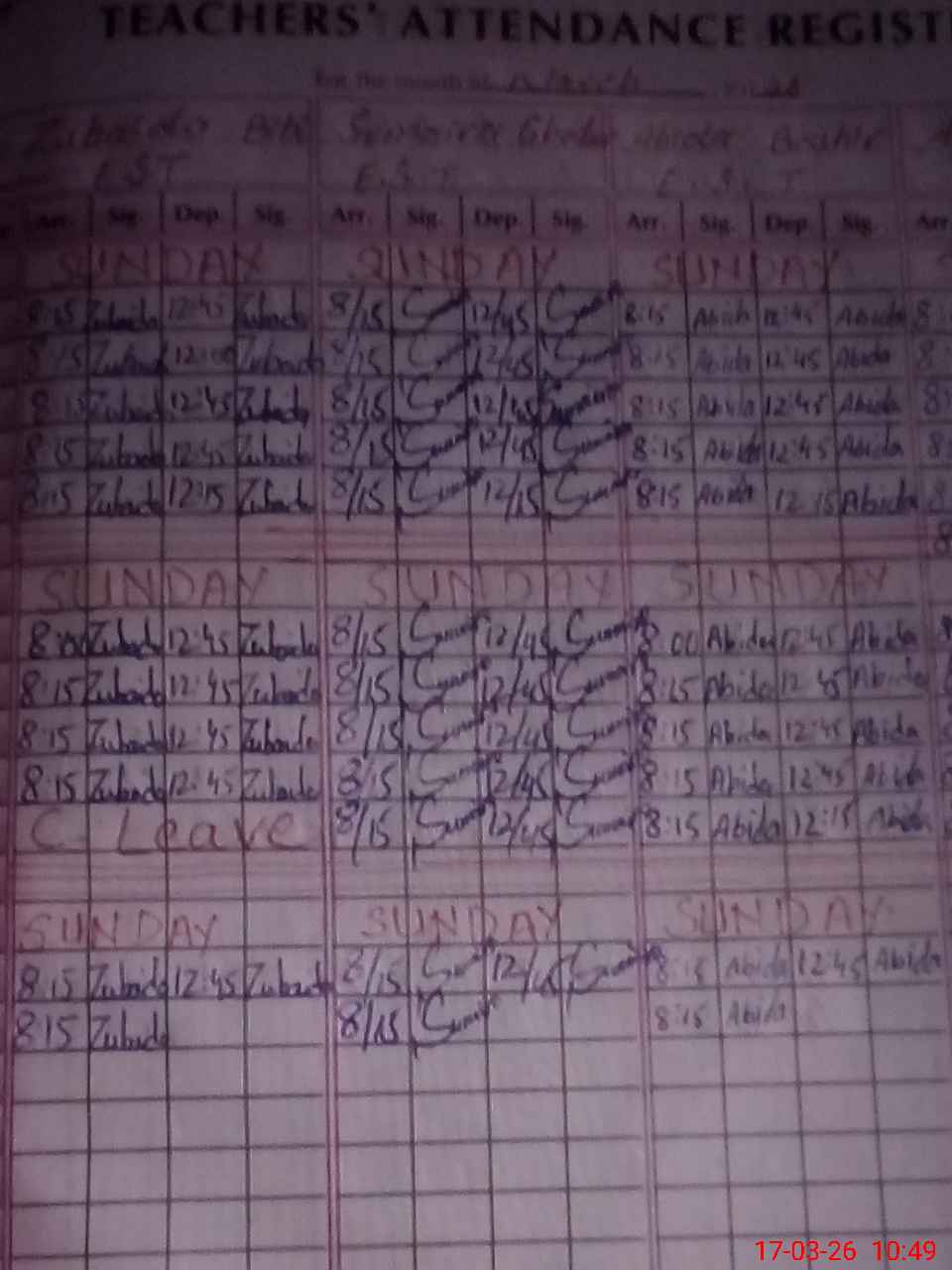 | CNIC | Full Name | Designation | R/C | Absence During Last Calender Month |