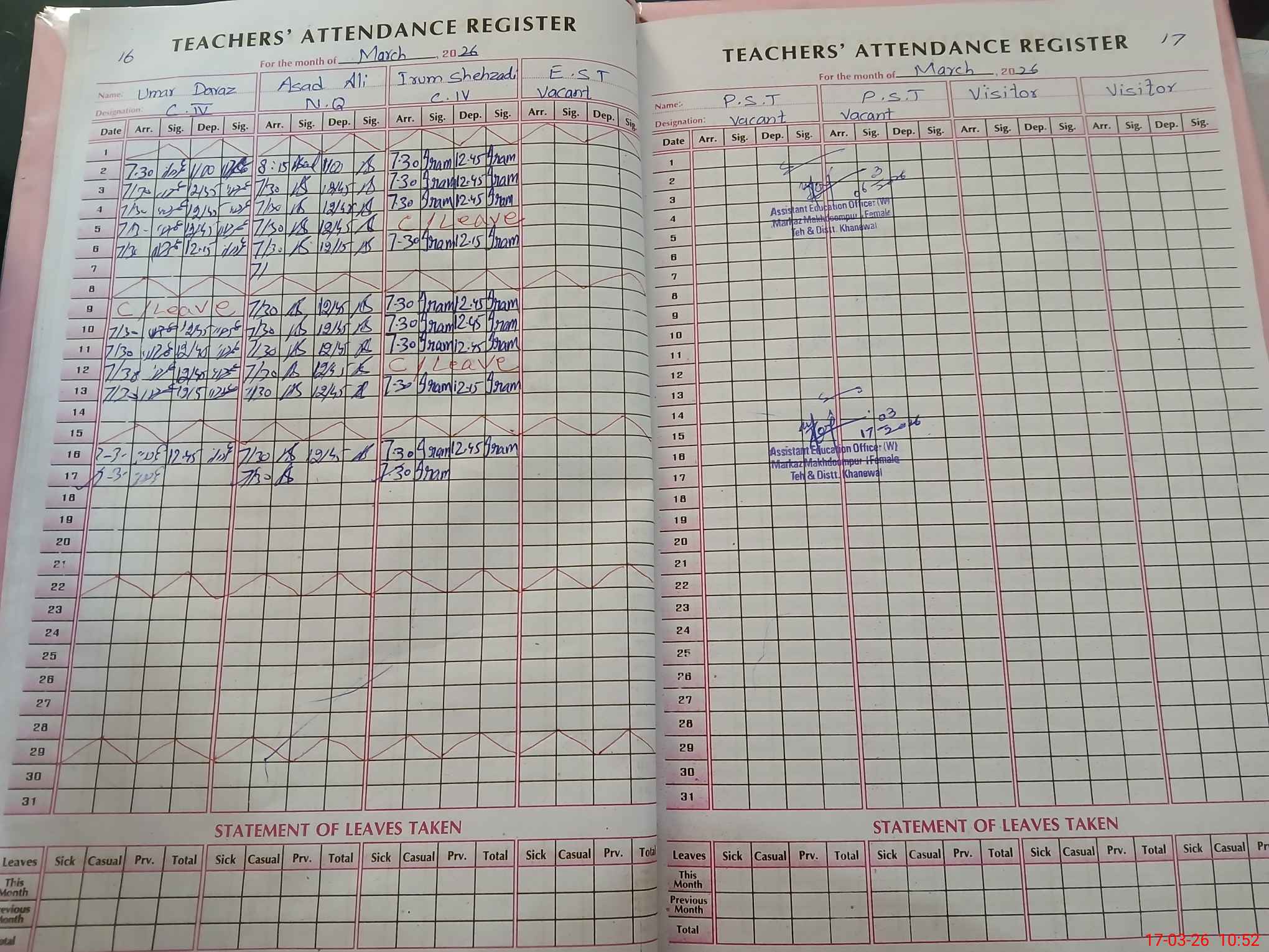 | Monitoring Date: 17-03-2026 | Start Time: 17-03-2026 10:22 AM | End Time: 17-03-2026 10:54 AM | Name of MEA: Za**** Fa**** Ch**** | |