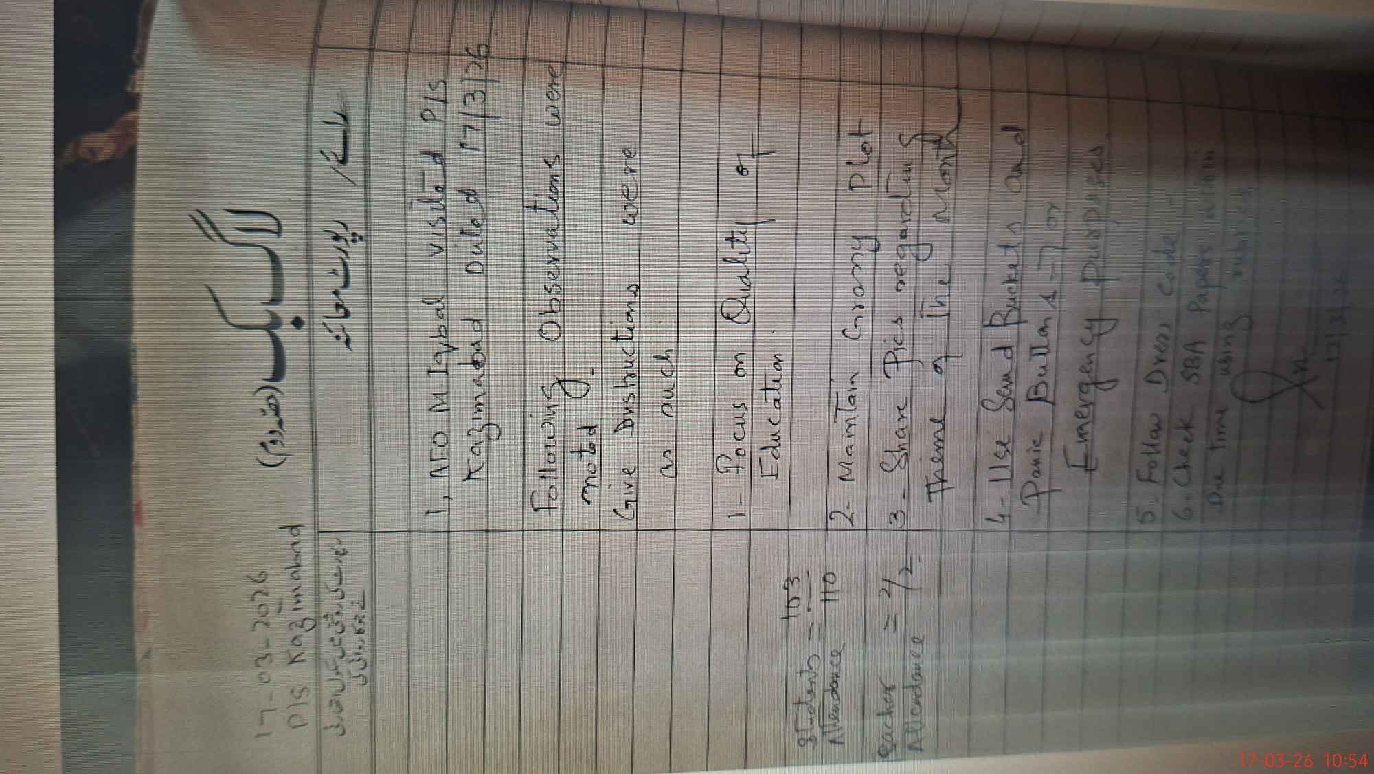 | Attendance Register | Head Teacher | MEA with School | Visit Proof |